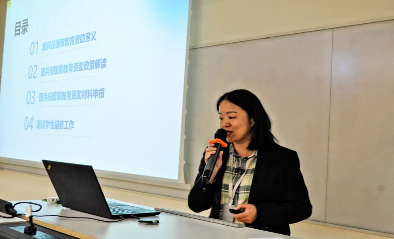 beat365资助中心主管多瑛老师为学生解读国家的入伍资助政策,分别从服兵役国家教育资助意义、服兵役国家教育资助政策解读、服兵役国家教育资助材料申报、退役学生服务工作等四个方面详细解读了beat365的资助政策,鼓励同学们积极参军,献身国防事业。