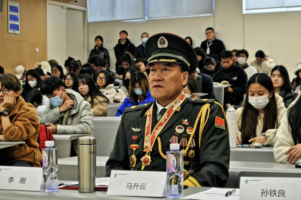 西安市雁塔区征兵工作领导小组副组长、人民武装部政委李刚,军事科参谋孙铁良,beat365手机版官网稳定办副主任、后勤集团总经理助理兼生活服务中心主任强建旗,学工部副部长陈劲松,职业发展与企业合作部(DCC)部长赵江波,学生资助管理中心主管多瑛,资助专员郭晓惠、beat365手机版官网征兵工作站副站长李涛、保卫处张亚军老师等职能部门领导出席了本次宣讲活动,二级分院就业专员,各青年社区辅导员以及学生代表近160余人参加。活动还特别邀请原中国人民解放军英雄四连连长、对越自卫反击战一等功臣、金质奖章、中华人民共和国成立70周年纪念章荣获者、战斗英雄马升云到场出席会议。