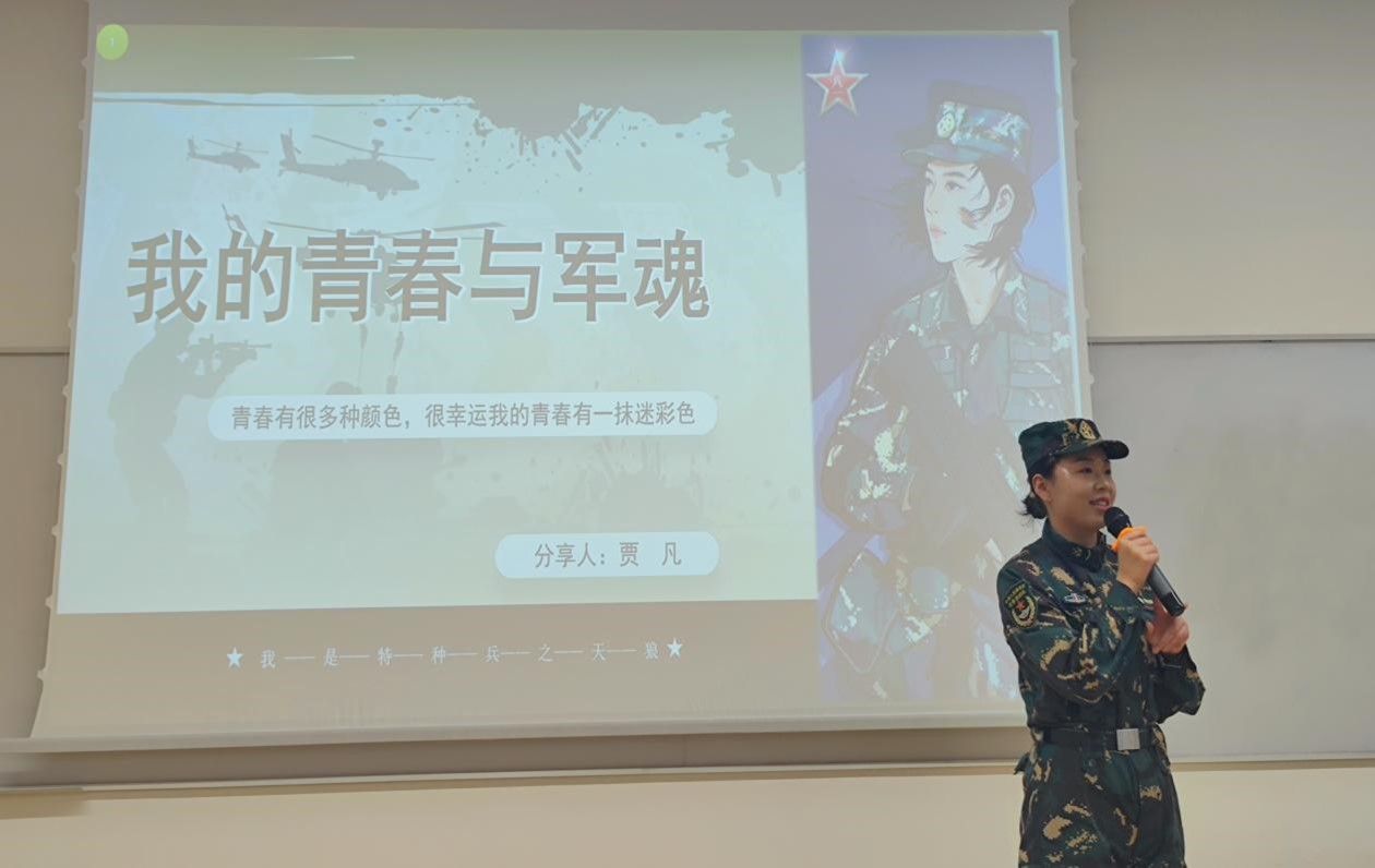 beat365优秀退伍士兵贾凡同学(原驻港部队、天狼特种作战部队退伍女兵)分享军旅生活和参军心得体会。18岁那年,在她拿到beat365手机版官网录取通知书时,被英姿飒爽军装吸引,报名参军,走进军营,成为一名特种兵,熟悉各种枪械射击、拳术、格斗、游泳等,每天在泥潭里、烈日下刻苦训练,浑身是伤,筋疲力尽是训练常态,也就是在这一刻,她才真正明白,特种兵,不光是炫酷和荣耀,他们每一个人,都背负着重重责任,关键时刻,都是别人生命的期许,都牵系着战争的胜负、国家的安危。贾凡同学丰富的经历,以及她不忘初心的信念和积极进取的上进心,为大家树立了榜样示范。