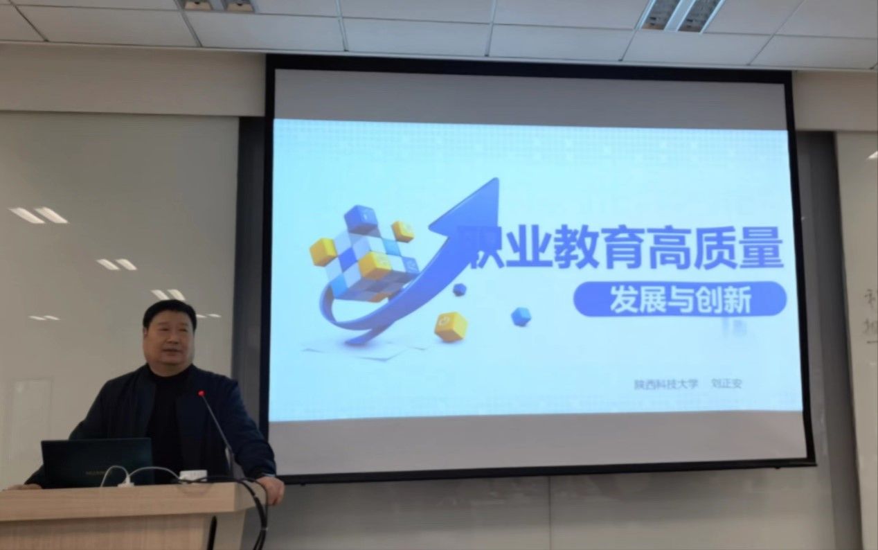 陕西科技大学刘正安教授以《高质量发展理念下的职业教育改革与创新》为题做报告。职业教育进入高质量发展阶段。高质量发展的新方向,一是对标国家需要,优化类型定位;二是回应百姓期望,调整体系结构;三是把握时代特征,深化产教融合;四是遵循内在规律,提升要素质量;五是适应国家对职业教育发展的需要,围绕产能合作,有序走向世界。