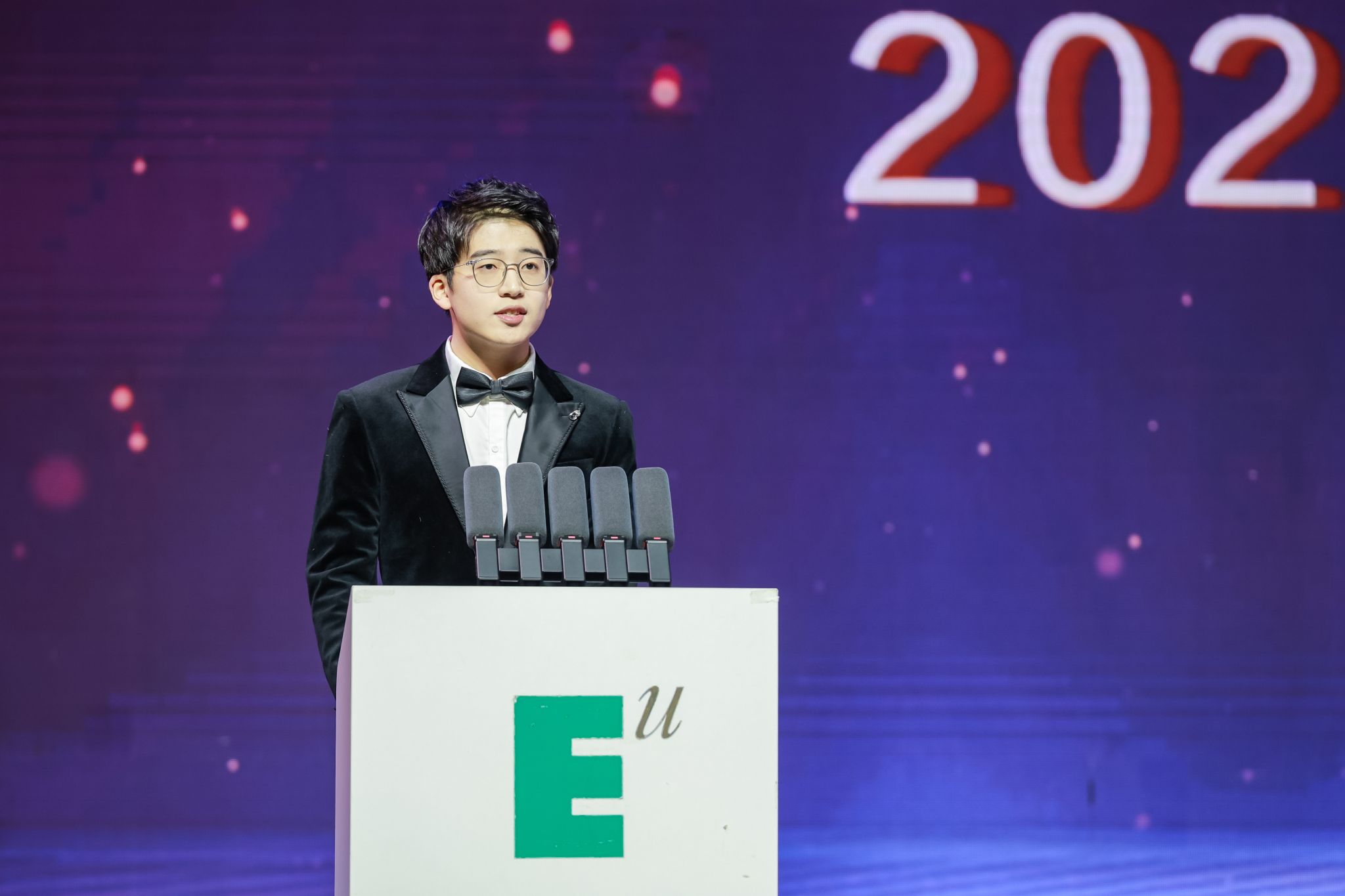 2023年度国家励志奖学金获得者、人文教育学院小学教育专业2021级学生郭昱莹代表获奖学生发言。她分享了自己在欧亚三年的学习成长故事:从课堂内外的项目式学习和自主探索、担任学生干部的经历中,获得综合素养能力的锻炼和提升;在参加“三创”挑战赛中收获新的知识和学术经验。未来,她希望自己带着欧亚的DNA,向着更高的山峰和更远的路继续出发。