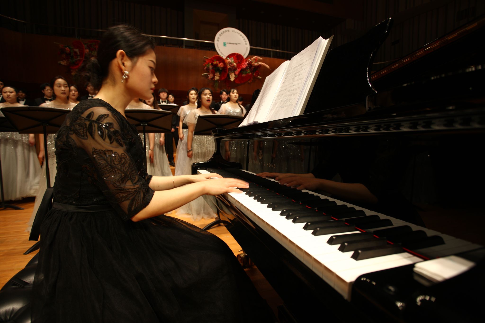 “刻苦,执着,包容,感性……”这是欧亚2019届毕业生、大学生艺术团声乐团第11届团长姬倚菩心中的合唱团精神印记。2018年第一场新年音乐会时,姬倚菩是学生指挥;今年第3次站上音乐会舞台的他,歌唱时看着周围陌生又“熟悉”的年轻面孔,自己在合唱团走过的旅程又历历在目:“最开始,我们走在学长学姐铺筑的音乐小桥上,我们是桥上的人;后来,我们就变成了桥,又有弟弟妹妹走在我们的桥上;听着他们的歌声,我们又成了桥下流动的水…… 轮转之间,当年那座音乐小桥已然变得更加宽阔和坚固。”