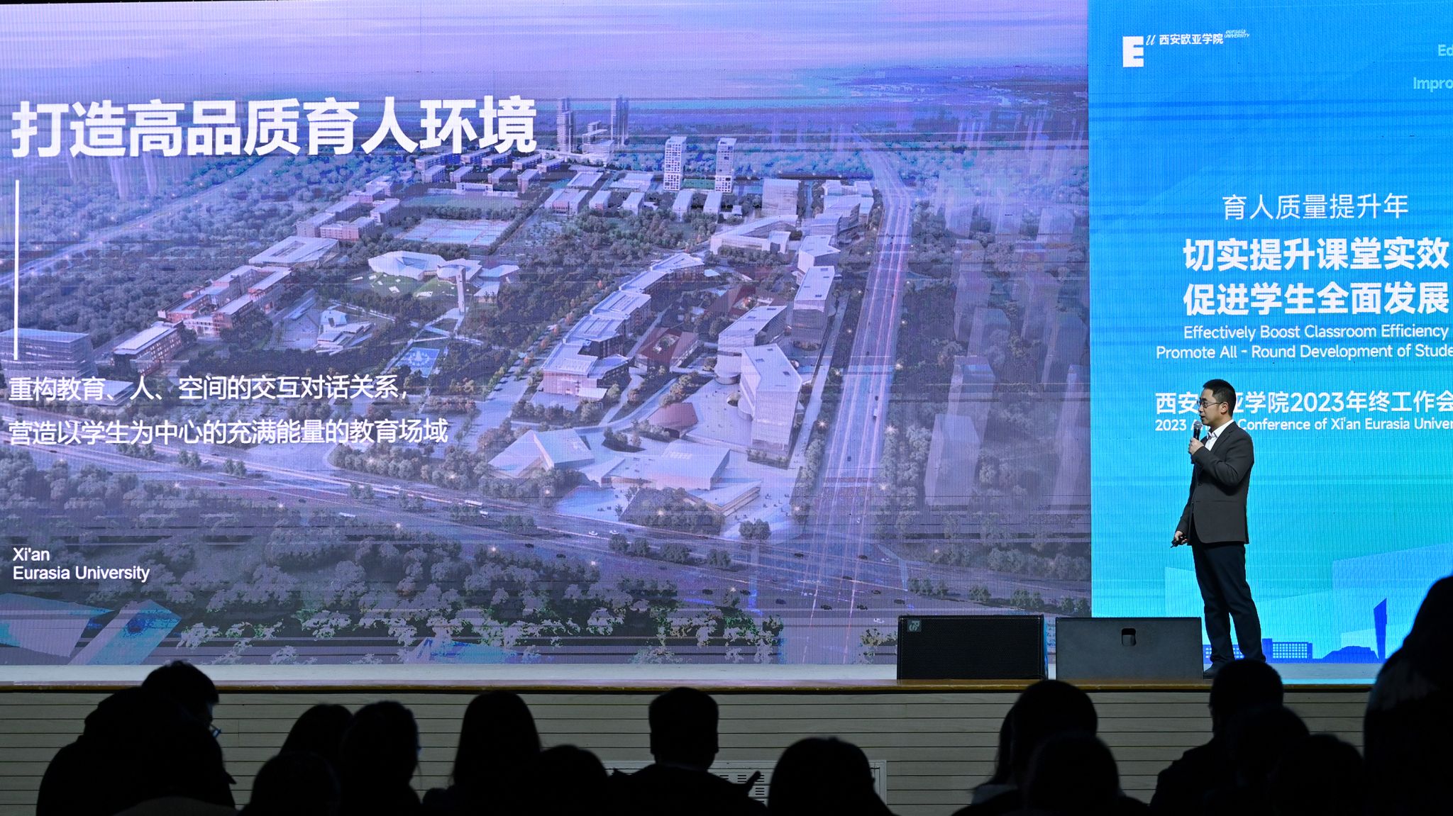 校长助理赵军镜代表绩效预算委员会作学校2023年工作报告。报告指出,2023年,学校以“质量贡献年”为主题,关注全员质量贡献,构建以学生为中心(SC)育人模式,各项工作取得良好成效:第五次教育教学工作会议顺利召开,SC育人体系建立;“以学生为中心”的课程改革持续推进,应用型课程建设获多项成果;在地国际化发展深入推动,连续三年获批“ACCA黄金级教育机构”,国际化教育进程再提速;科研与社会服务十四五规划修订完成,明确有组织科研战略发展重点,科研与社会服务成果产出稳步提升,国家级项目及科研成果奖取得新突破;战略性人力资源管理体系不断完善,开启“回声计划”,优化校级培训体系,深化教师职称制度改革,激发全员活力与工作热情;校史《按你本来的样子生长》正式发行,深度多元传播欧亚价值主张;高等教育数字化转型变革走向深入,升级教学质量监测平台,学生成长档案袋、教师数字档案袋上线运行;高品质教育教学空间建设不断推进,西区学生服务中心封顶,轮滑广场、图书馆景观广场、北区c-d座非正式学习空间改造完成;战略管理工作机制持续完善,治理体系与治理能力建设扎实推进,流程优化项目稳步实施。