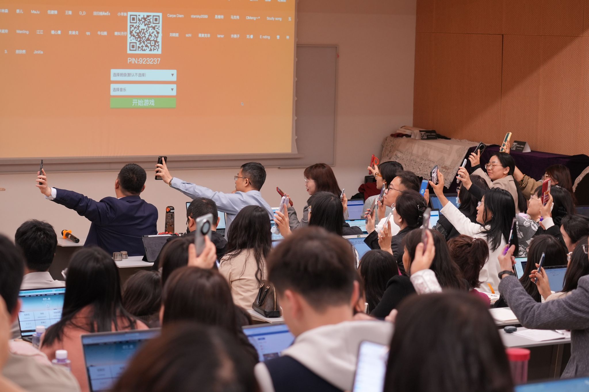 在介绍极简教育技术的基础上,焦建利教授通过生动的实例进行了详细示范,介绍了极简教育技术的应用——课堂有点酷,包括“纸条范、快抢、击鼓传花、倒计时、思享汇”等。这些技术不仅易于操作,而且能极大地提升课堂的互动性和学生的参与度,让现场老师们深刻体验到了极简教育技术的魅力。