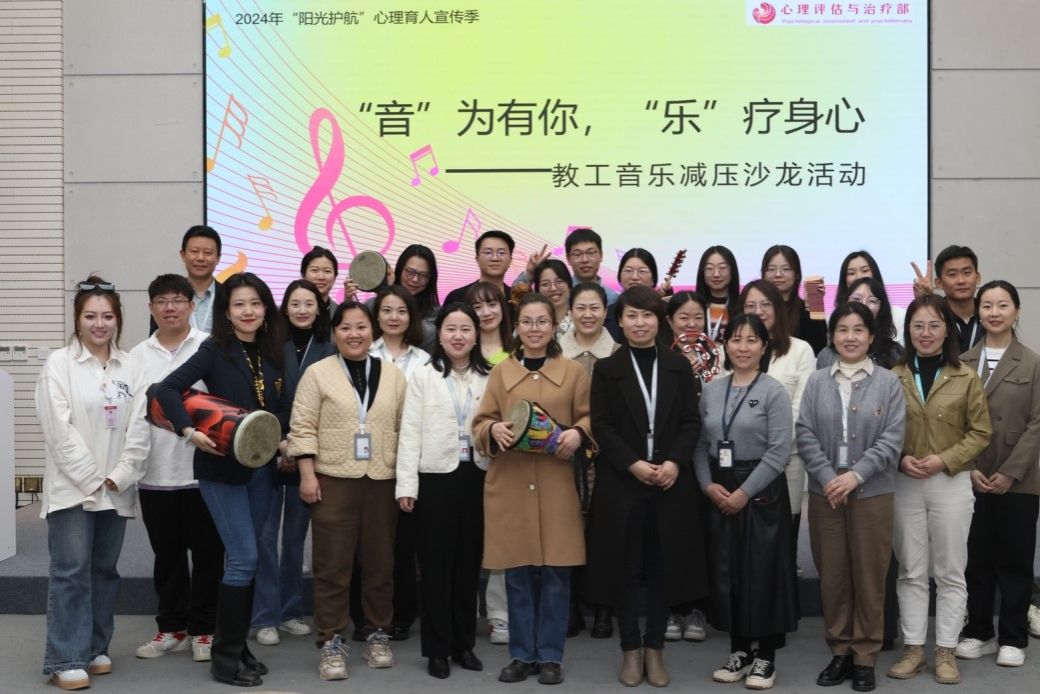 教师是教育的根本,亦是一种用生命感动生命的职业,教师这一工作的特殊性决定了教师心理素质的重要性。为了给教工提供一个放松心灵的机会,学生心理咨询中心借启动仪式的契机,邀请西安国际医学中心医院音乐治疗师向全校的教工开展了一场音乐减压沙龙活动。