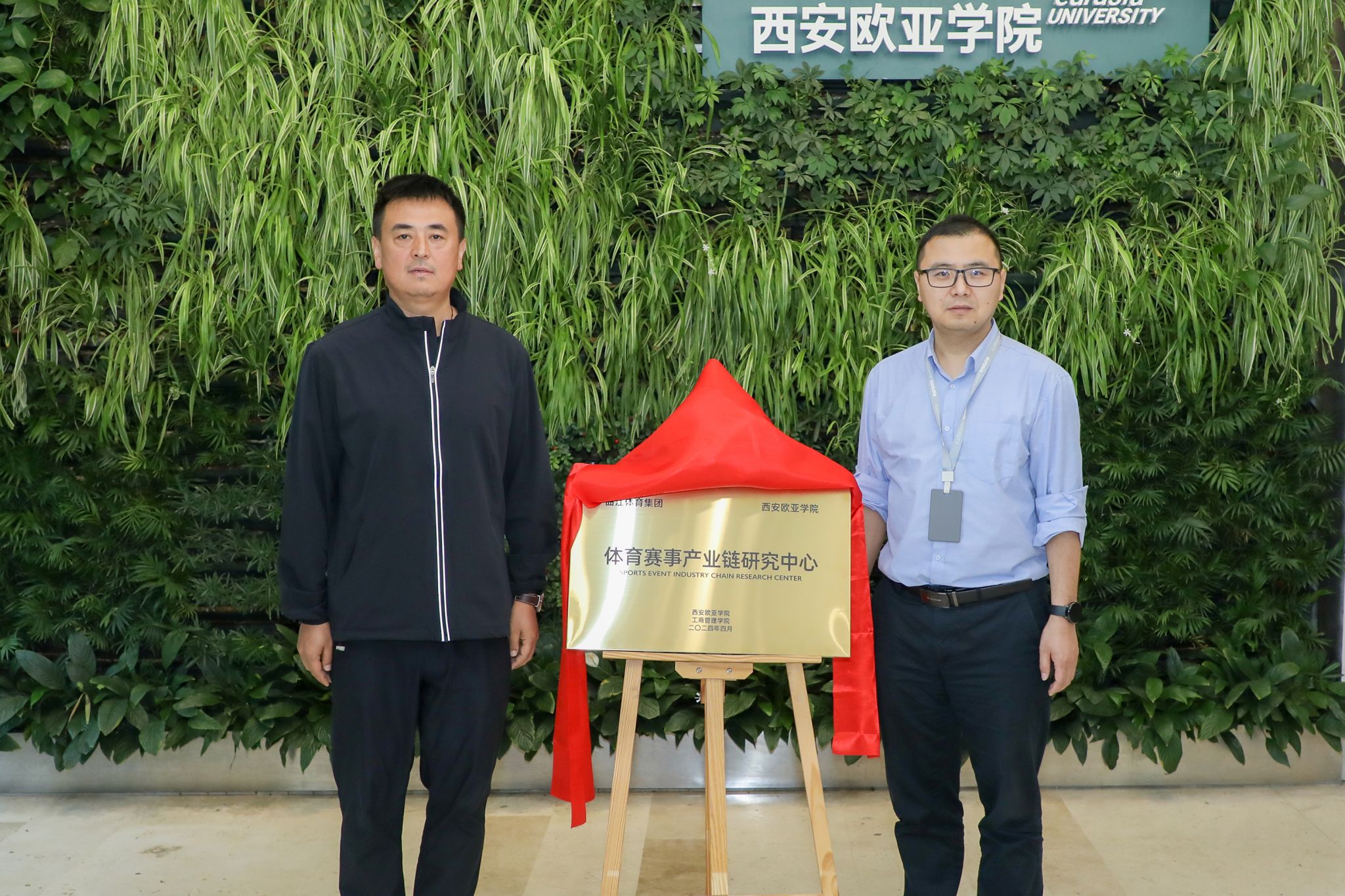 (图二)西安曲江体育集团有限公司总经理李强(左)和beat365手机版官网工商管理学院院长吴睿(右)共同为体育赛事产业链研究中心揭牌