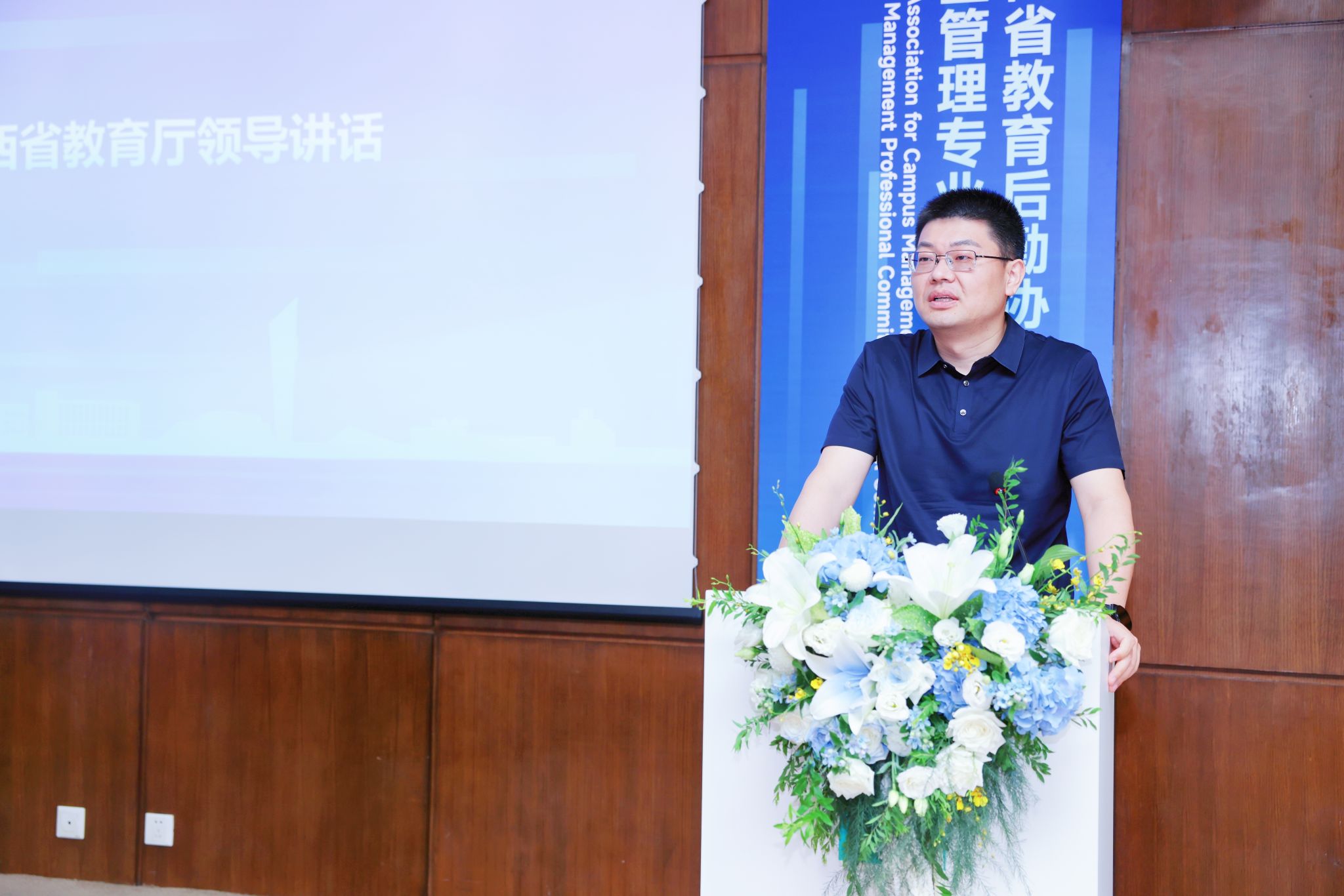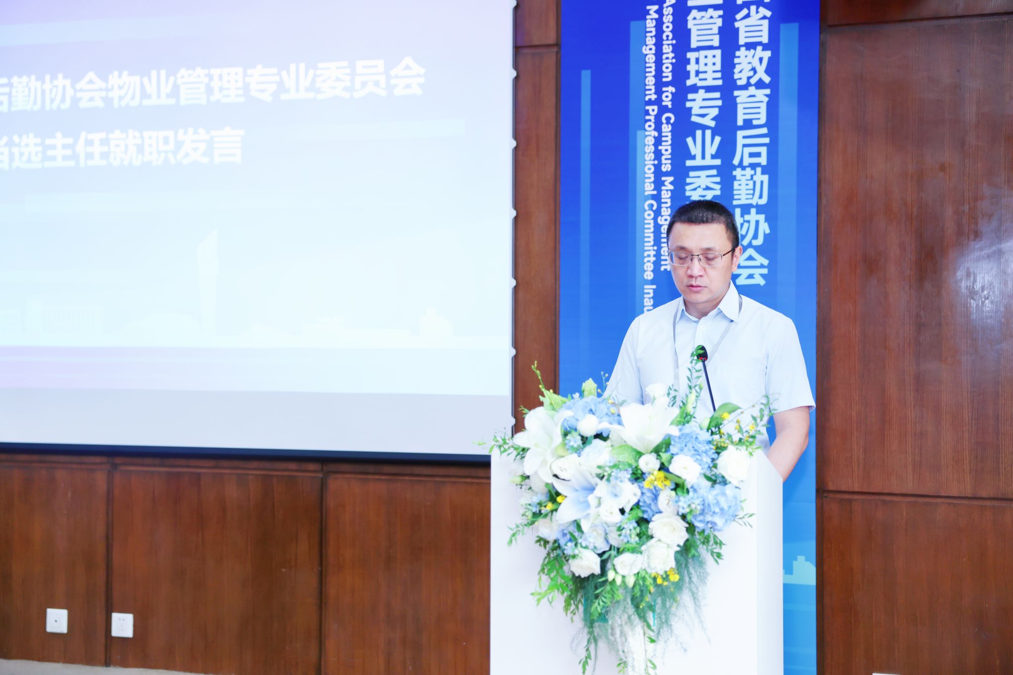 陕西省教育厅发展规划处苏卓副处长讲话。他指出,物业管理是学校事业发展的重要保障之一,对学校的整体运营起着重要的作用,物专会的成立标志着我省校园物业管理工作进入了一个新的发展阶段。为切实做好全省学校物业管理工作,他提出几点希望和要求:一是以人为本,不断提升物业服务能力。要求各校要更新管理理念、优化管理技术、健全管理制度、强化管理队伍,不断提高校园运行管理的精细化水平;二是勇于开拓,积极推进物业创新发展。在引进现代科技手段、创新管理模式、推行标准化管理、加强人才培养、引入优质资源等方面为物业管理创新发展提供新的思路和方法;三是融入大局,充分发挥协会职能作用。物专会应加强内部规范管理,提升专业能力和服务水平,努力成为推动学校后勤物业管理工作的重要力量,助力全省教育后勤事业高质量发展。