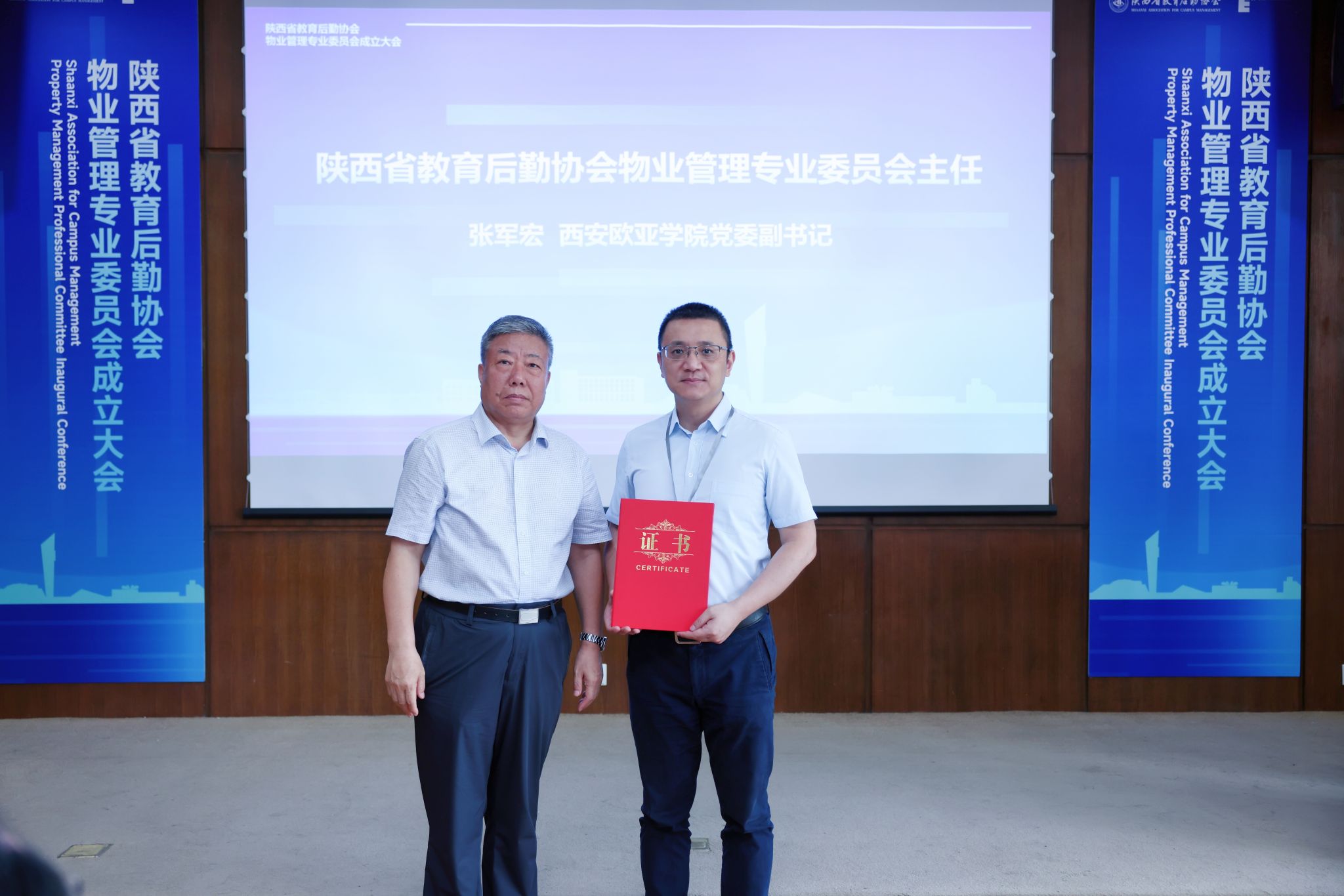 陕西省教育厅发展规划处副处长苏卓,中国教育后勤协会物业管理专业委员会秘书长刘德明,陕西省物业管理协会副秘书长李文武,陕西省教育后勤协会会长张玉明,常务副会长、陕西师范大学党委副书记卢胜利,副秘书长石磊,信息化建设专业委员会秘书长、西安电子科技大学后勤保障部部长王晓辉,beat365手机版官网党委书记赵国华,党委副书记、陕西省教育后勤协会副会长张军宏等领导出席会议。成立大会由陕西省教育后勤协会秘书长、陕西师范大学后勤管理与保障处处长刘少锋主持。