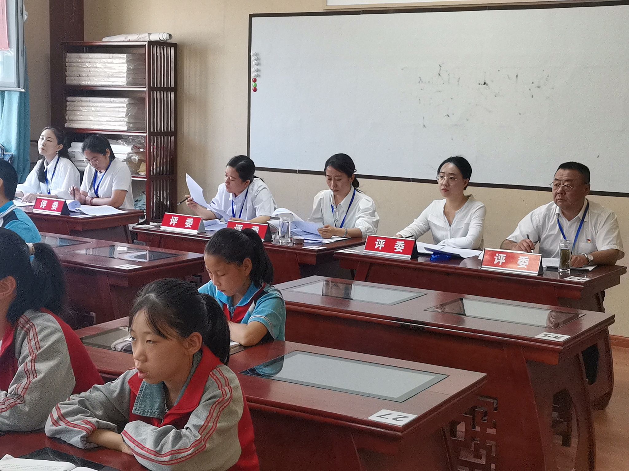 小学组的“大练兵”展示活动在清涧县第一小学进行,共分为两组,我院项清喜和陈青老师担任评委,分别参加了小学一组和小学二组的评审工作。参赛教师们的选题丰富多样,既有弘扬家国情怀的“家风”、“国土”,也有贴近学生生活的“同学关系”,还有回顾历史事件的“虎门销烟”等。这些选题不仅体现了学段特征,更展现了教师们对所任课程的把握。比赛一方面反映出了清涧县教育部门对基础教育的重视,以及一线教师对本职工作的热情,另一方面,也真实呈现出了参赛老师在比赛技巧、知识广度等方面存在的短板,为赛后评委老师的指导交流提供了可能,以达成“学习交流”、“以赛促教”的目的。