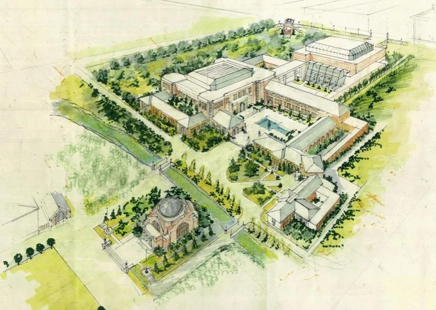 (图九)关先生对清华图书馆四期的构思草图,关注对校园环境的保护、对校园文化的传承。