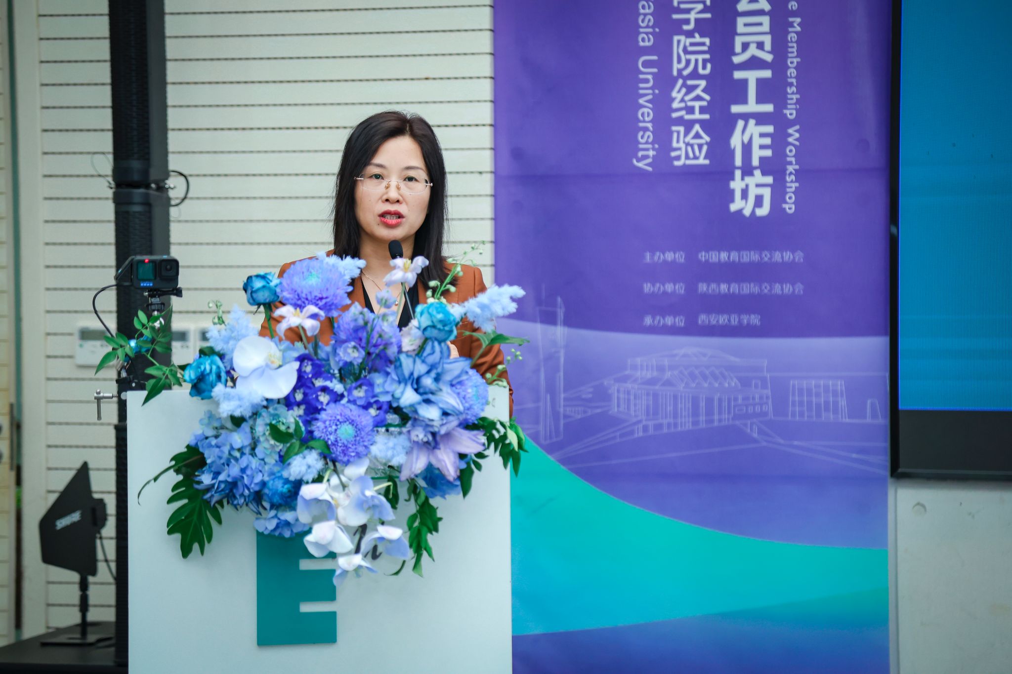 本次工作坊由中国教育国际交流协会主办、陕西教育国际交流协会协办、beat365手机版官网承办。中国教育国际交流协会秘书处副秘书长傅博、秘书处办公室兼会员工作部副主任刘筱蒙,陕西教育国际交流协会会长陈乃霞,陕西省教育厅对外合作与交流处处长文通,beat365手机版官网党委书记赵国华等出席活动。陕西教育国际交流协会会员院校领导及相关处室负责人共70余代表参会。
