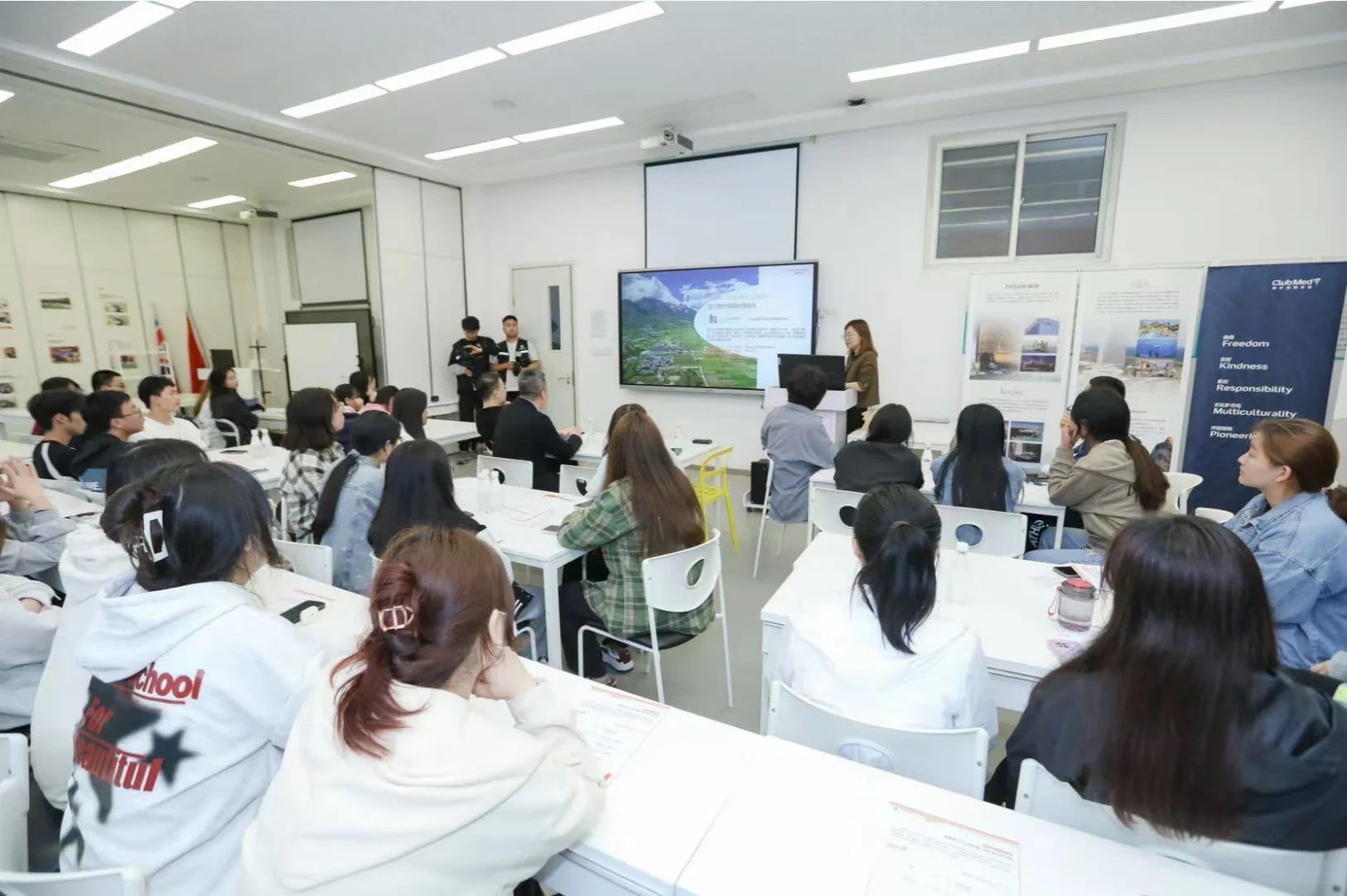 在此基础之上,复星旅文产业学院与工商管理学院共建旅游管理双语班,针对国际就业项目,为学生们提供海外企业实习就业机会为目标的在地国际化双语实验班。实习就业对标企业涵盖世界十三个国家地区,提供超过六大管理领域200+岗位,学生们将在双语实验班获得外教授课、国际游学、国际实践项目、外企就业推荐等高质量教育服务。