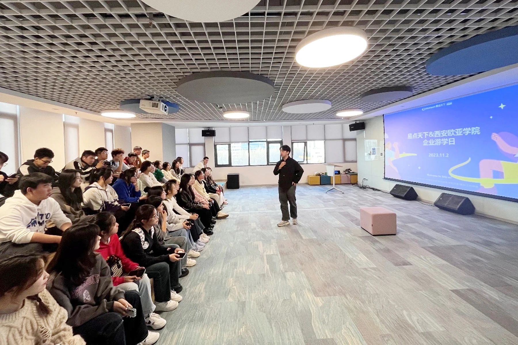 如今,第二期订单班正在如期开班,专业的教学管理与教师辅导均围绕企业和学生的需求进行。在学生大三时,校企将联合开设固定课程,专职教师与企业导师联合教授,针对易点天下需要的海外广告优化师、AM(客户经理)等岗位进行培训并依据企业人才标准进行考核。