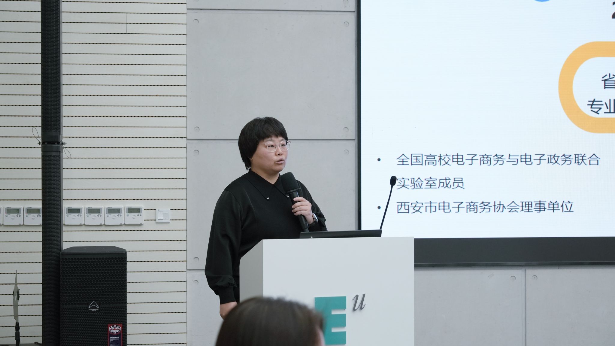 (图二十二)西安邮电大学数字艺术学院教学主管石云平在研讨会上发言