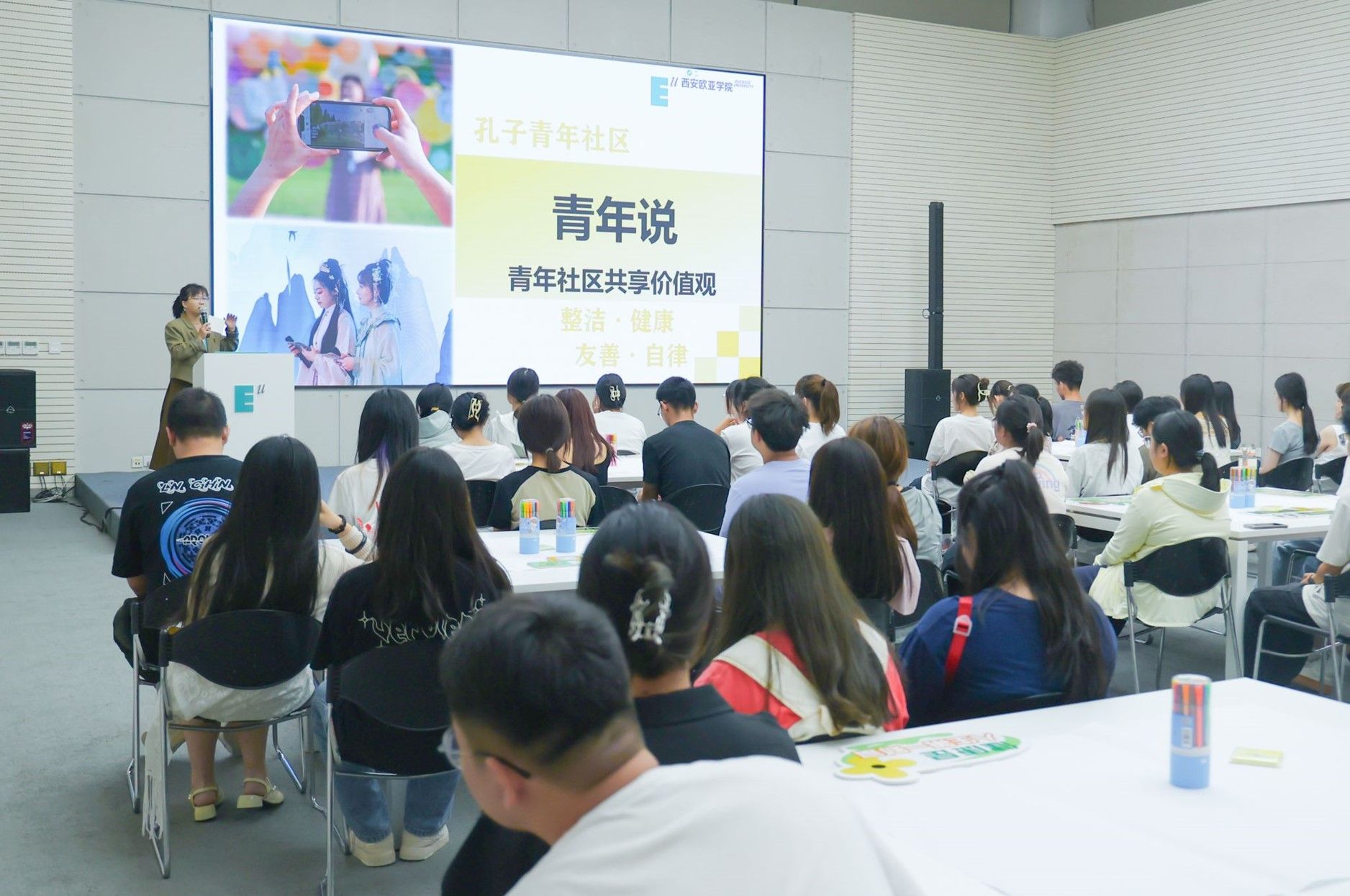 "If I were an admission officer, how do I cognize, express and introduce my major?" "How will this major shape us?" In the "Role-Playing as Admission Officers" session, freshmen displayed their talents and skills, presenting their cognition of their majors in enrollment posters and major presentations. Students of various majors created colorful, creative and interesting enrollment posters in groups with their paintbrushes. They introduced the campus environment, international teaching, major highlights and development prospects of Xi'an Eurasia University in a more diverse way, including some amazing surprises: Students majoring in Engineering Management created an architectural space model of the campus with clay, and made the class interesting through lively introduction; freshmen majoring in Finance shot a video vlog, recording the details of the two days and the learning scenes on campus. The calm, enthusiastic, professional or imaginative expression of the students presented more possibilities and imagination for the upcoming learning.