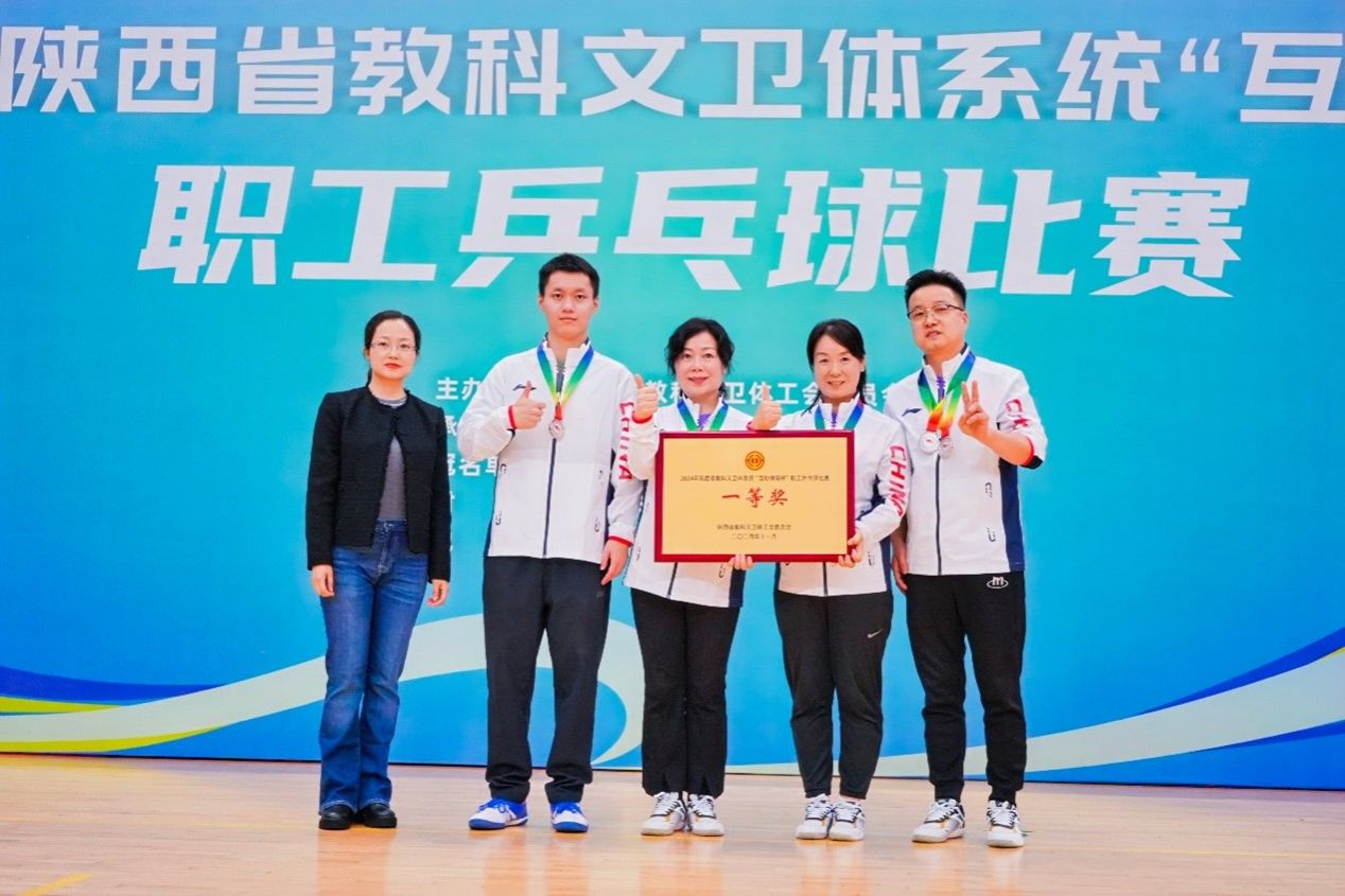 11月初,陕西省教科文卫体工会举办的 “中国梦 劳动美 新征程 建新功”2024 年陕西省教科文卫体系统职工乒乓球比赛圆满落下帷幕。beat365在此次比赛中表现出色,获得亚军,勇夺团体一等奖,beat365教职工强能获得优秀教练员称号、韩亚维、陈建良获得优秀运动员称号,为学校赢得了荣誉。