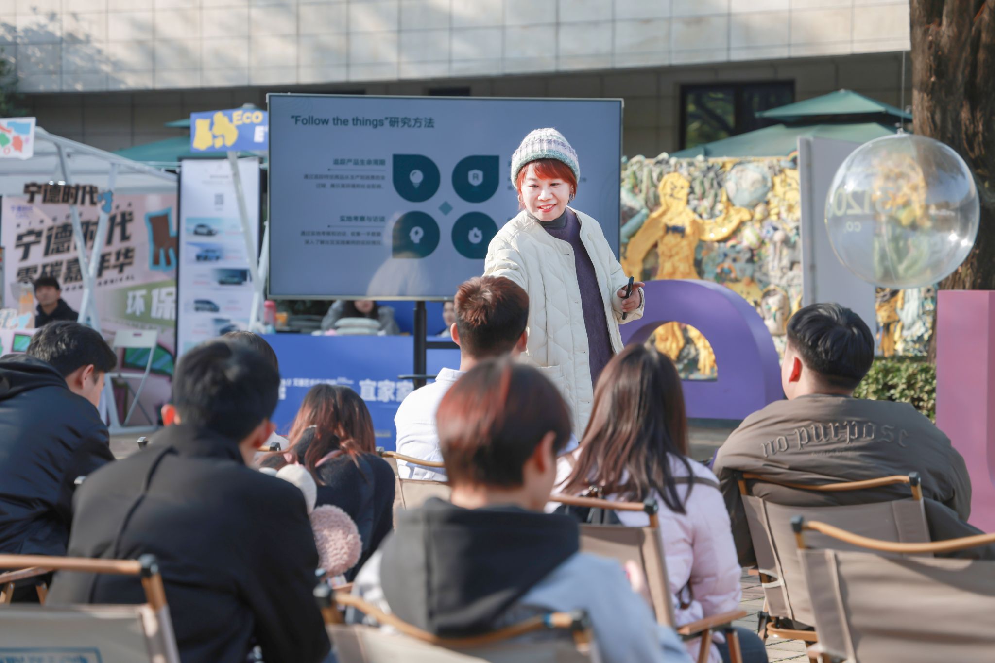 大疆无人机试飞与新品打卡,宁德时代新能源电池零碳嘉年华,噢麦力燕麦奶试饮和企业可持续发展报告分享……这些深耕可持续发展、践行ESG的企业,在市集上以轻松的互动体验吸引师生们关注自己的品牌,无形中影响着新生代年轻人的可持续生活消费方式。