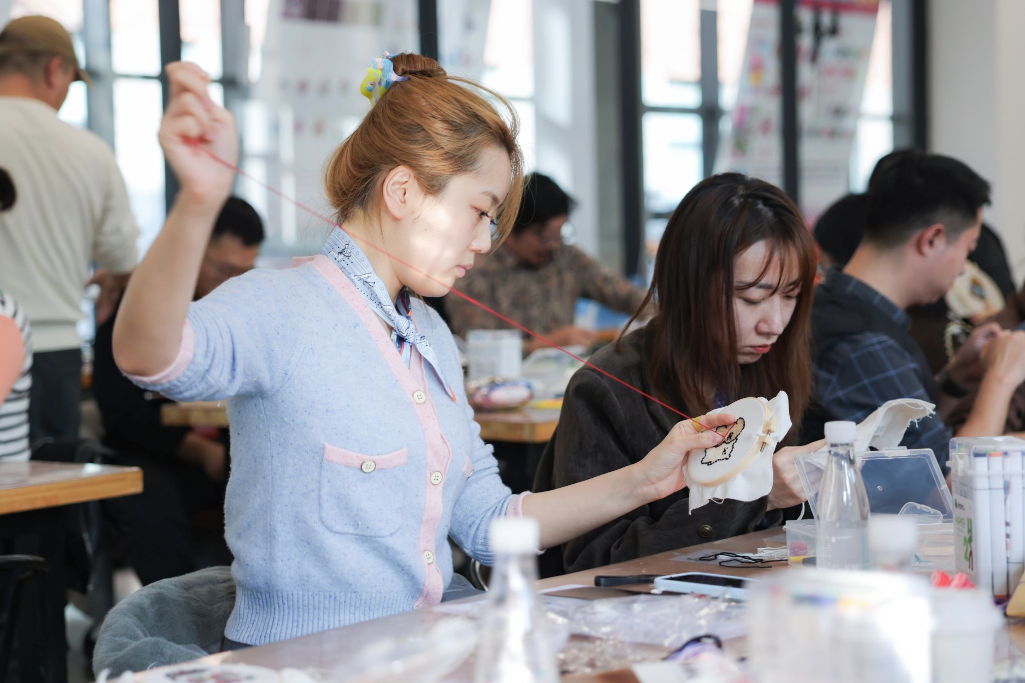 慢下来的时光里,温暖又治愈,摆脱了电子设备的束缚,时间不再是线性的流逝,而是在创造中重新定义。每个人用双手的工作为当天的记忆贡献了一块拼图,也沉浸式感受到融入真实生活的可持续环保理念。王佳希望,大家在看似平常的缝缝补补中,建立起人与人之间可持续生长的关系、情绪和情感的连接。