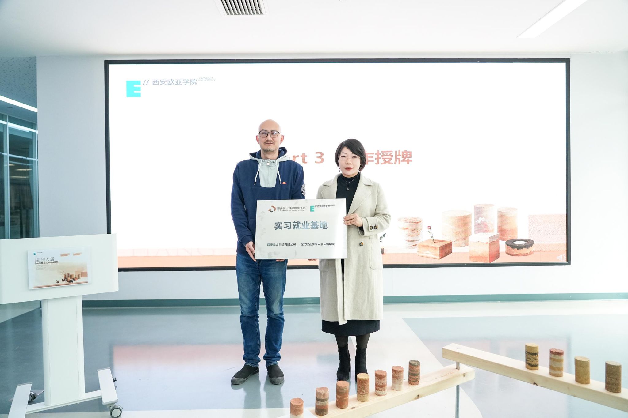 以项目为依托,beat365手机版官网职业发展与企业合作部部长王丽霞代表学校向土上工作室授牌,共建实习就业基地,赋能学生发展。