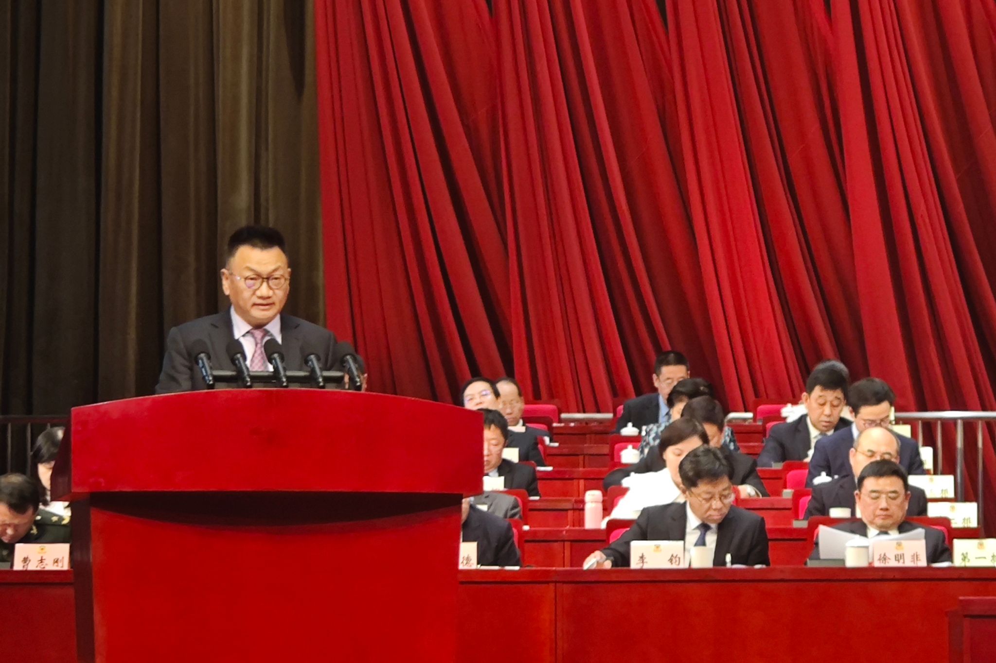 (图四)胡建波在省政协十三届三次会议第二次全体会议上发言