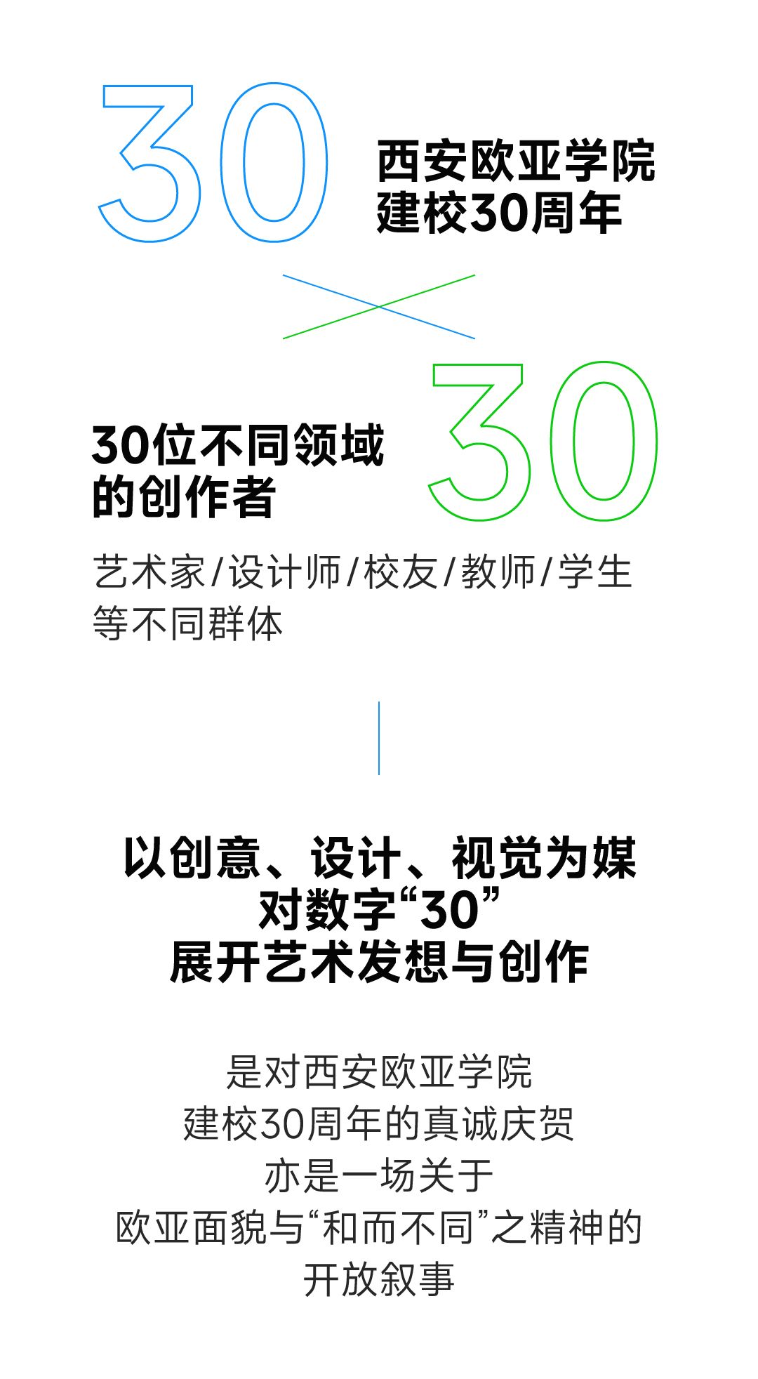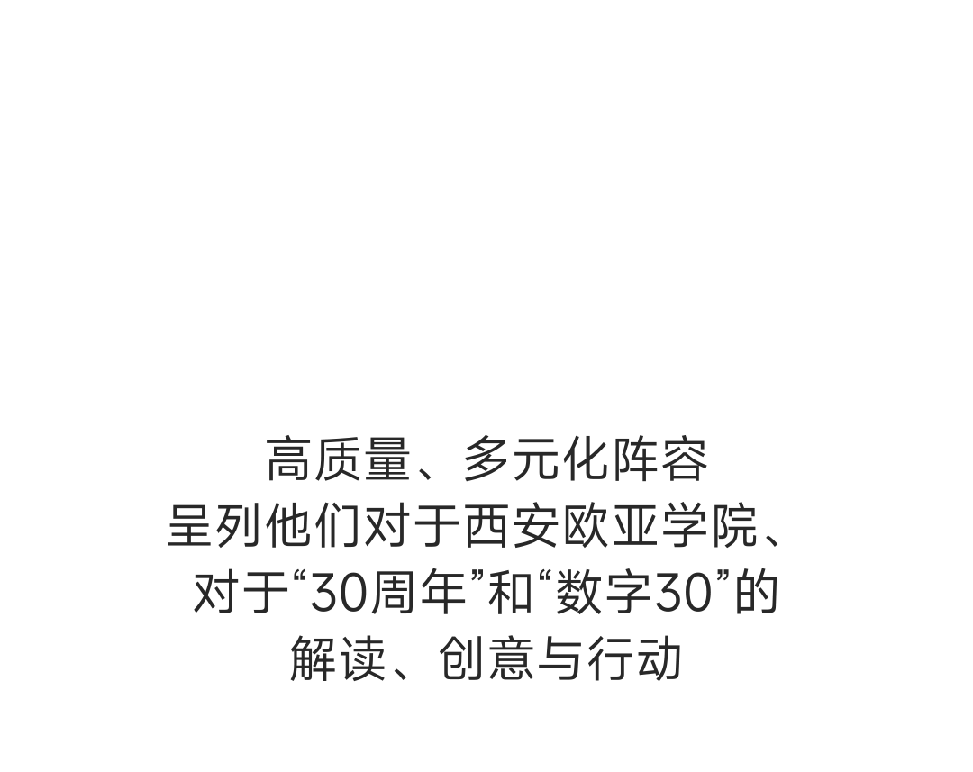 在这些维度的碰撞下、在建校三十周年的重要契机上,beat365手机版官网秉持“和而不同”的校训精神,开启“30×30”艺术创作行动,希冀通过联结不同的创意领域、群体与技术,实现对“30”全新的创作,让意义走向公众,完成共同的作品。