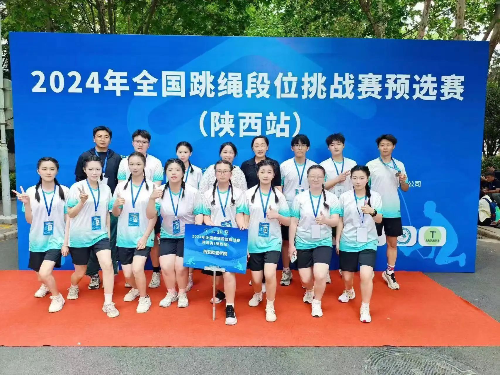 在比赛时其实我们也出了一些差错,在参加大学生甲组混合组双人车轮跳花样规定基础套路的比赛时,不同的动作为一整套循环,于越在比赛过程中缺失了一套动作,但是源于我们长久以来的默契,我自然而又流畅地接住了下个动作。最终,我们成为全场完成度、完整度最高的队伍,获得了2024年陕西省学生跳绳比赛一等奖。