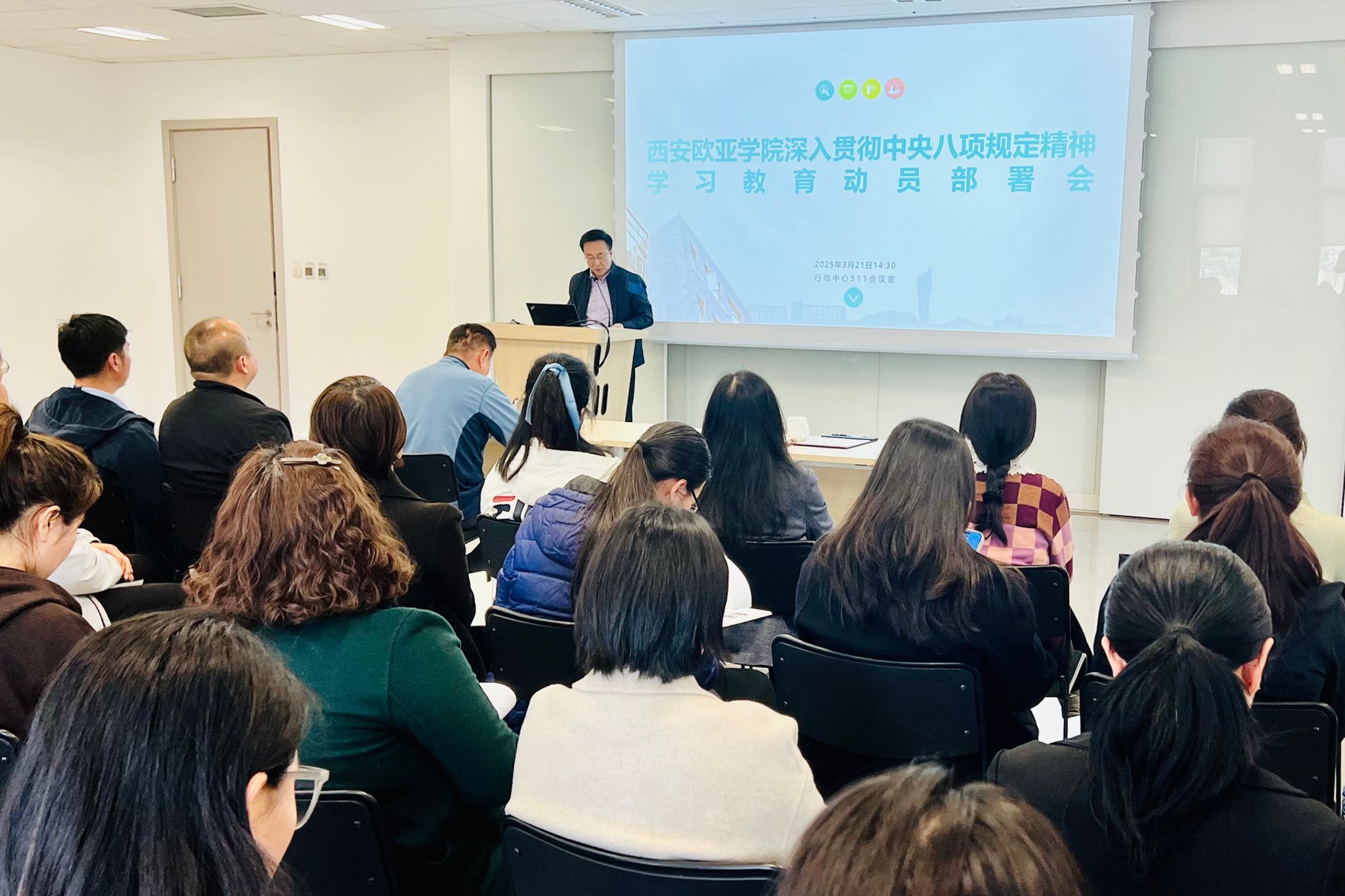 会议指出,深入贯彻中央八项规定精神学习教育,是巩固深化主题教育和党纪学习教育成果、纵深推进全面从严治党的重要举措,是密切党群干群关系、巩固党的执政基础的必然要求。党的作风建设是全面从严治党的重要组成部分,必须锲而不舍贯彻落实中央八项规定精神,驰而不息推进作风建设常态化长效化,以深入贯彻中央八项规定精神学习教育成效推进深入贯彻习近平总书记关于教育的重要论述和历次来陕考察重要讲话重要指示精神,以高质量党建推动学校事业高质量内涵式发展,加快建设学生满意、员工信赖、同行尊重、社会认可、政府放心的中国一流的国际化应用型本科高校,为以中国式现代化全面推进中华民族伟大复兴提供有力支撑。