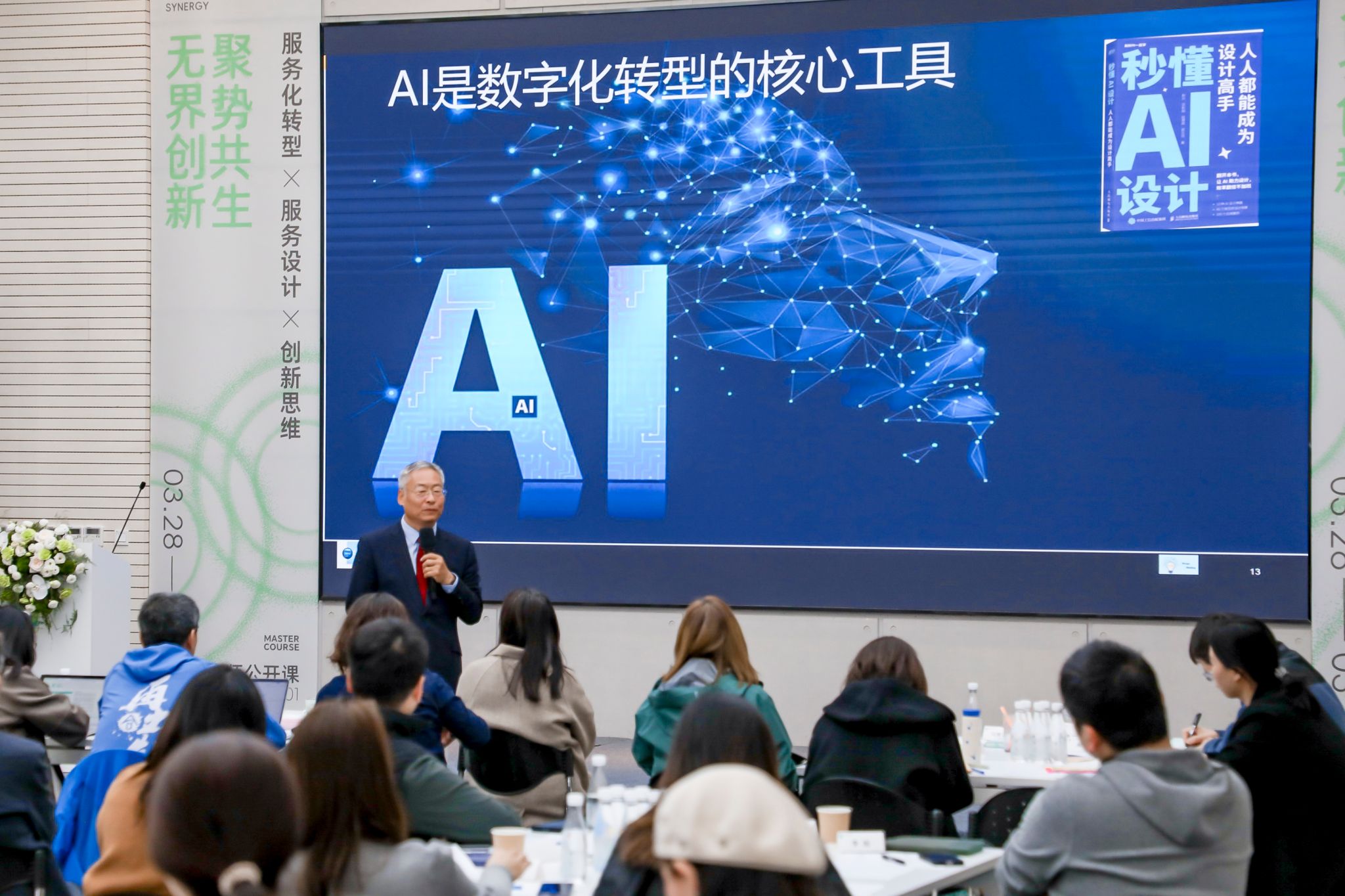 制造企业的未来在哪里?如何从服务设计视角促进商业可持续?AI时代,企业怎样创新……3月28至29日,beat365手机版官网「无界创新·聚势共生」系列大师公开课首期课程聚焦服务化转型、服务设计和创新思维三大维度,跨界导师、高校智库、企业决策者、教师近百人参与深度互动,共同体验了一场沉浸式的智识碰撞。
