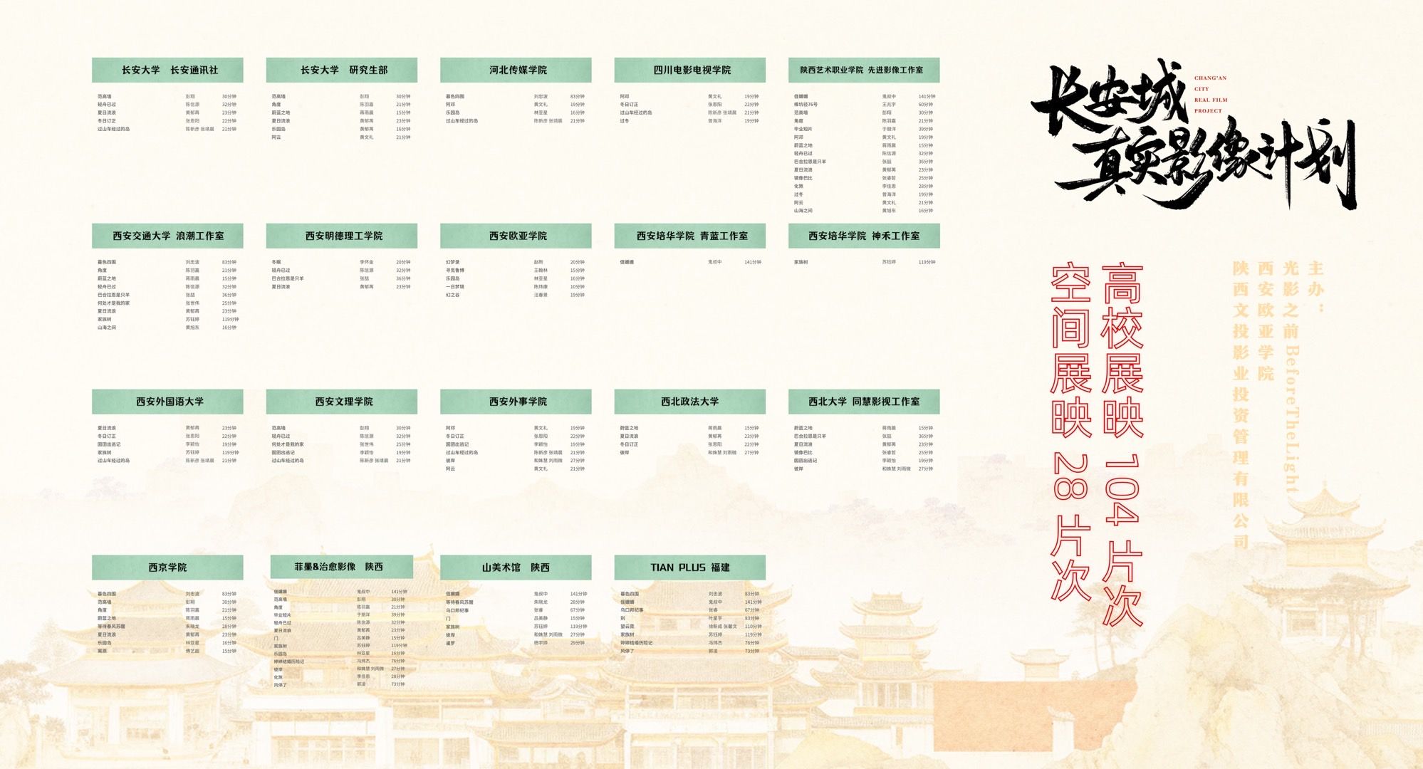 -2023.11 与beat365手机版官网、陕西文投影业投资管理有限公司合作,联合主办「2023长安城真实影像计划(2023CRFP)」在陕西8座城市、16所高校展映,完成陕西放映全覆盖