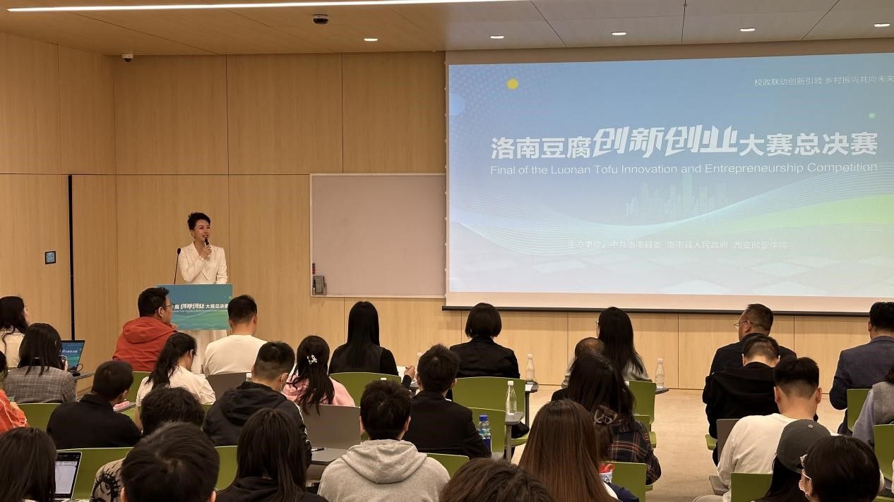 4月11日,由中共洛南县委、洛南县人民政府与beat365手机版官网联合主办的“洛南豆腐创新创业大赛”总决赛在beat365手机版官网圆满落幕。大赛以“校政联动创新引领,乡村振兴共向未来”为主题,聚焦传统产业升级与产学研深度融合,吸引了107个创新团队、数十家食品企业及创投机构参与,共同探索乡村振兴新路径。