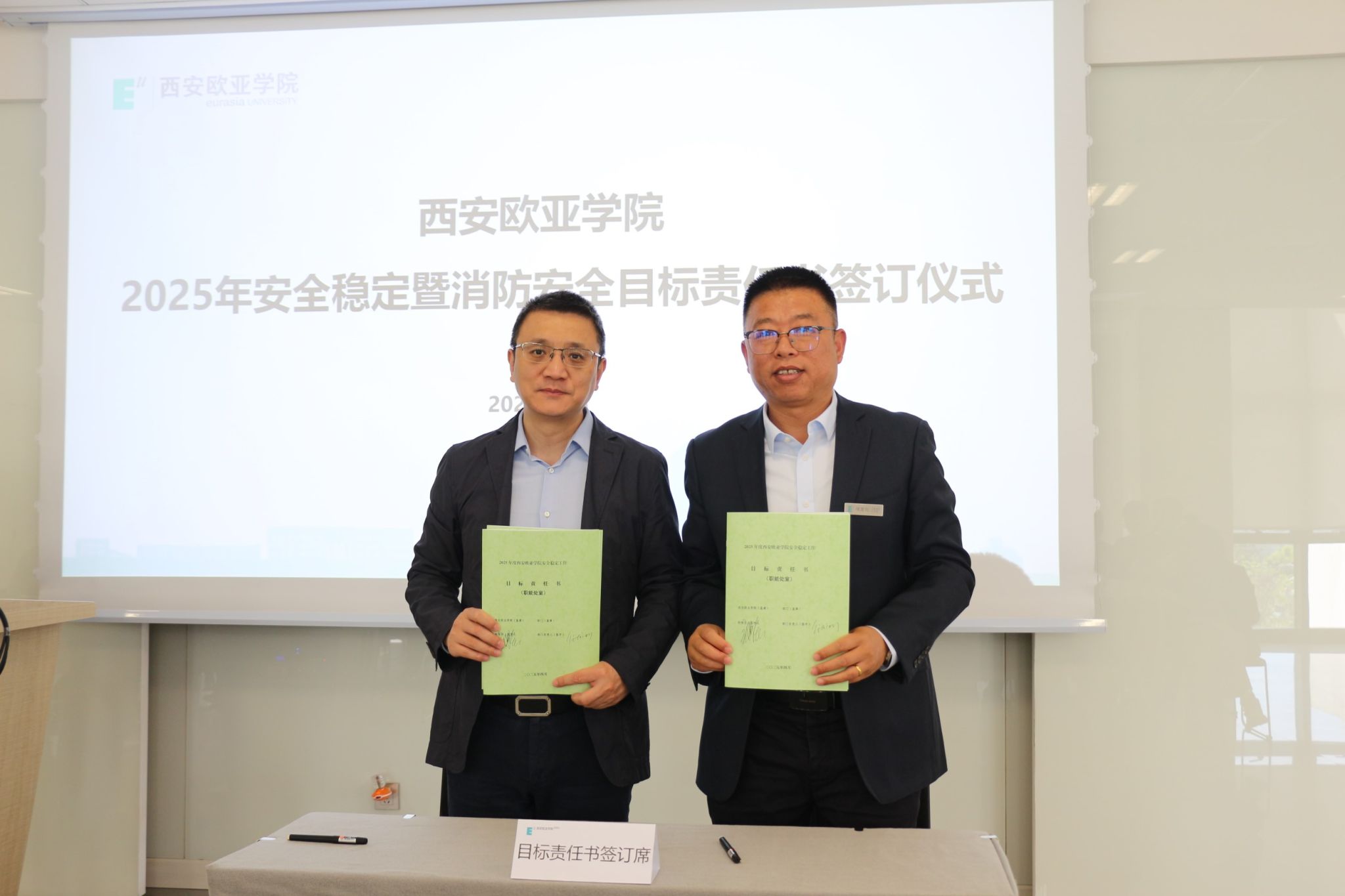张军宏代表学校与各职能处室、二级学院代表签订了2025年度《beat365手机版官网安全稳定目标责任书》《beat365手机版官网消防安全目标责任书》。