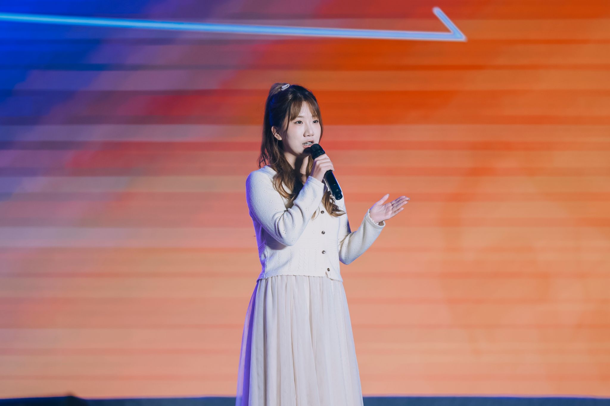 “长期主义”的理念,也影响着欧亚人“利他”品格的形成。来自会计金融学院、Xdea青年社区2022级的孙玛馨怡,分享了参与三原县东周儿童村志愿服务的经历。在长期的联系和陪伴中,这里的孩子们已与志愿者建立起深厚的情谊。东周儿童村的老师郭东方与三位孩子——力来、王露曼、约则你拉也来到晚会的舞台上,分享了他们和欧亚志愿者之间的故事,并为30岁的欧亚送上生日祝福。