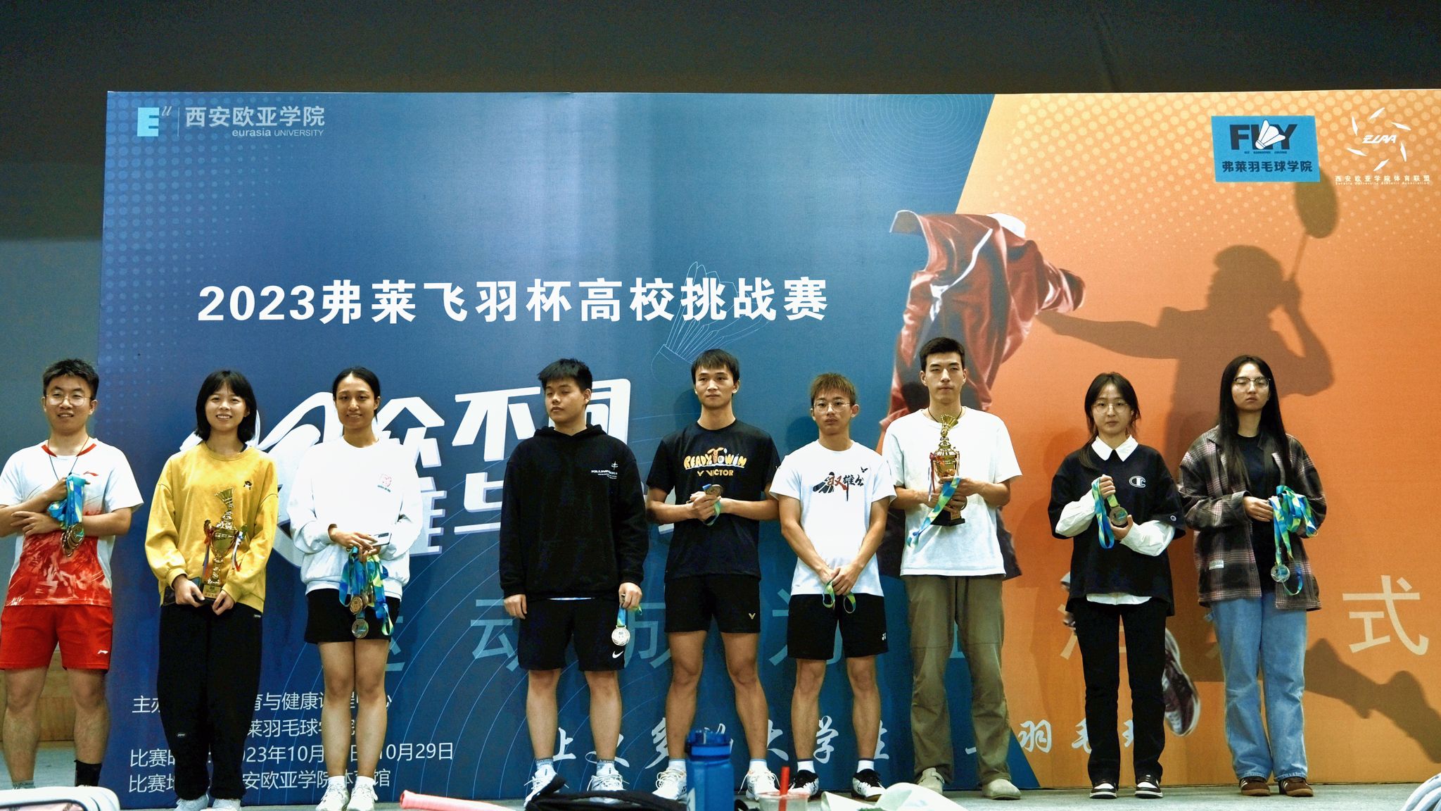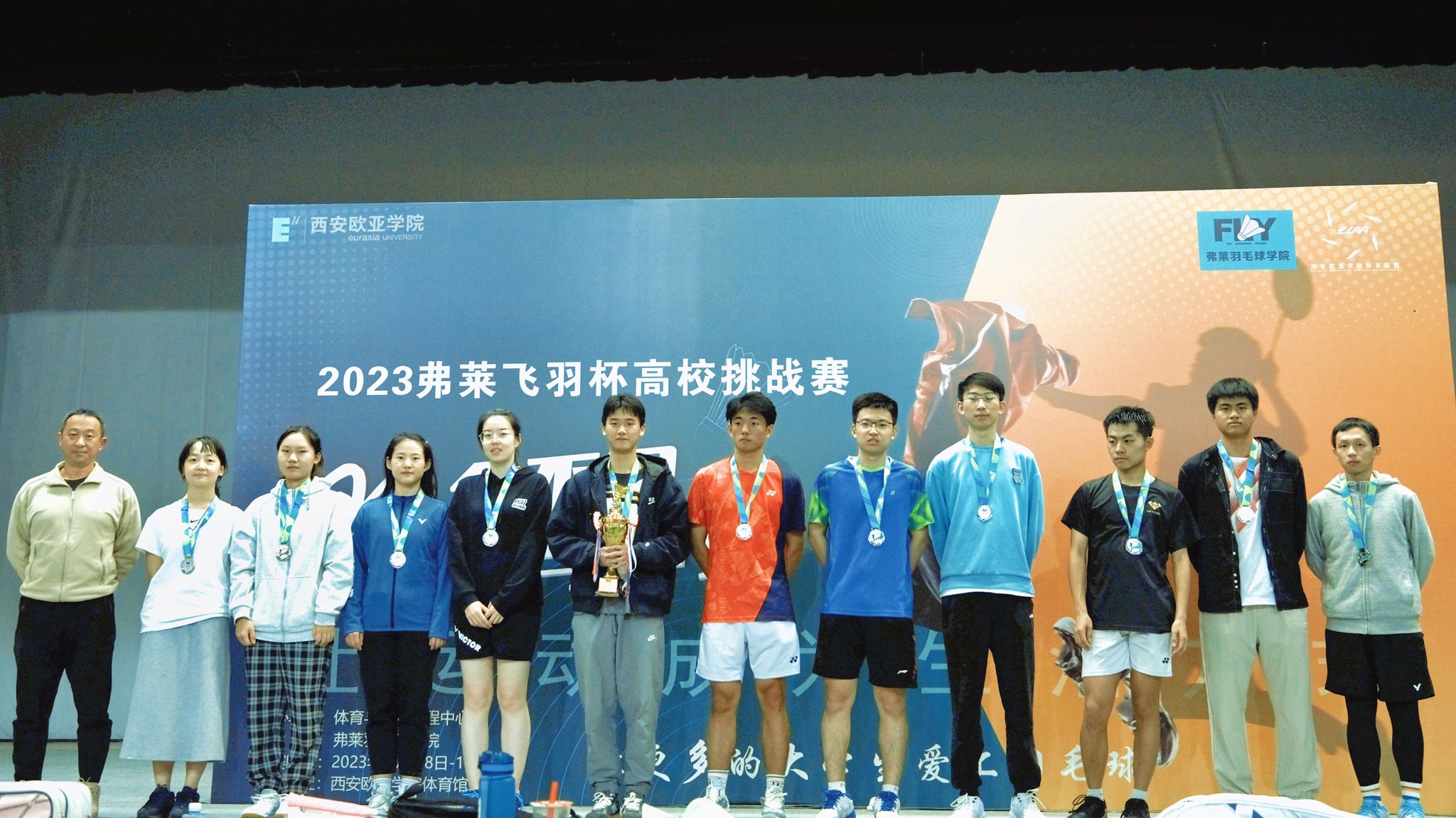 10月28日-29日,beat365通识教育学院主办的首届“弗莱飞羽杯”陕西高校羽毛球挑战赛在体育馆举行。来自西安交通大学、西安电子科技大学、西安建筑科技大学、西安外国语大学、西安邮电大学、西安财经大学、西北政法大学和beat365手机版官网的8个代表队、100余名选手参赛,共享羽球盛宴。