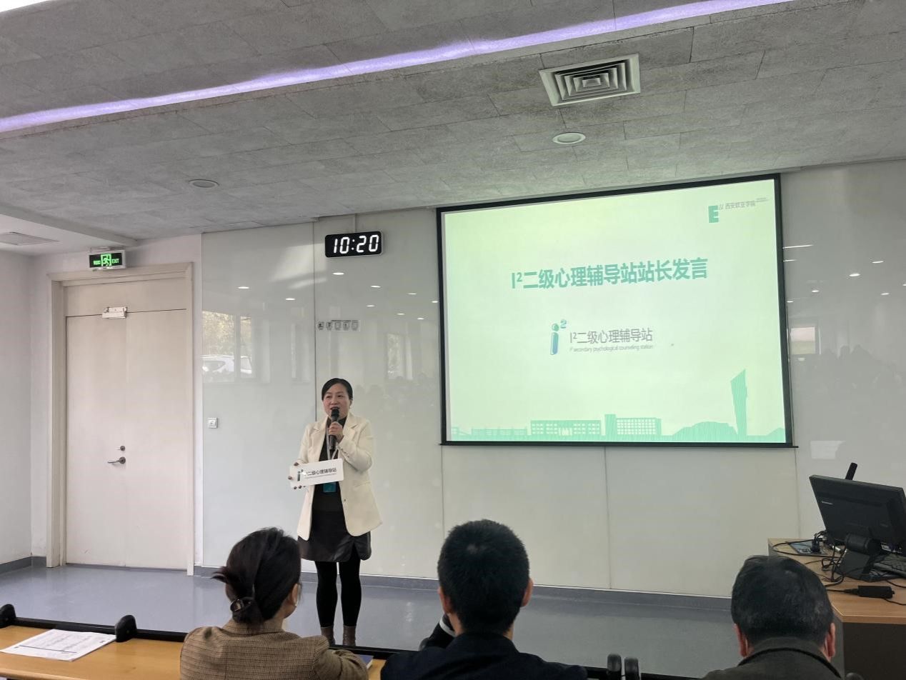 (图四)I²二级心理辅导站站长顾琳进行辅导站内涵及工作介绍