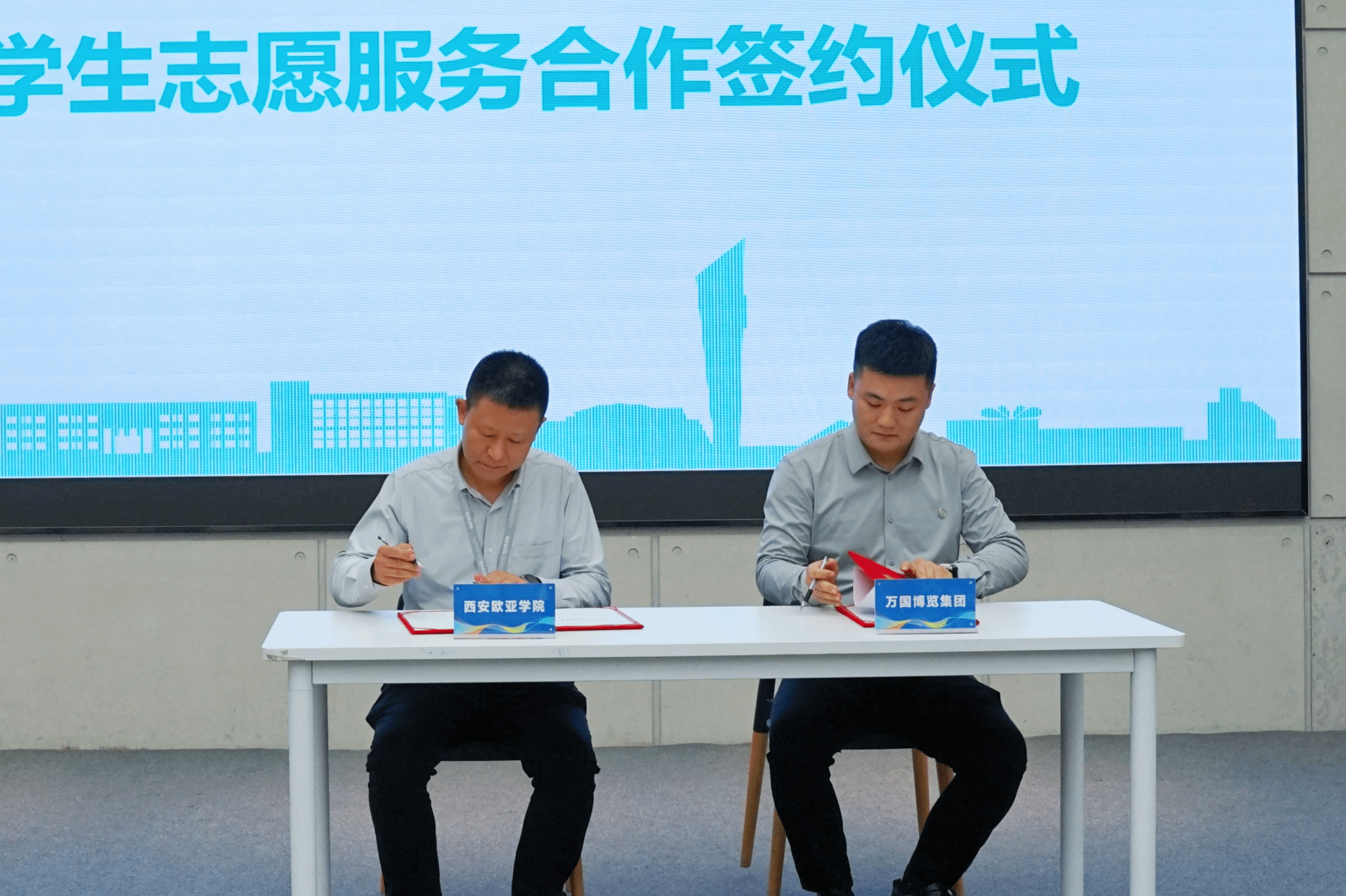 接下来,学生发展处处长、校团委书记董杨与万国博览集团有限公司总经理归栋签署了大学生志愿服务合作协议。董老师代表学校向万国博览集团有限公司授“大学生志愿服务实践基地”牌,由在场全体人员见证。此次授牌有利于促进校企双方共同发挥优势,为推动社会公益事业的发展,提升beat365学生志愿服务质量和学生社会实践、实训、就业提供了更加广阔的空间。