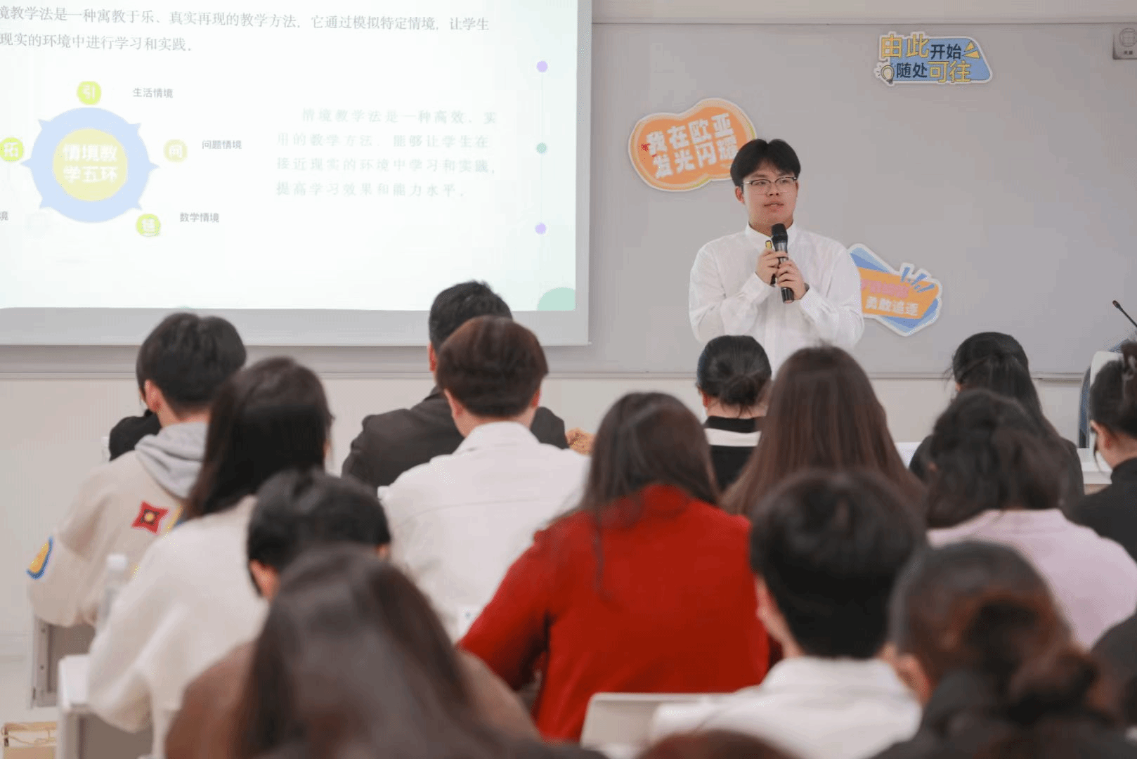 本次比赛分为说课和授课两个部分,说课环节各参赛队伍纷纷登台,通过富有感染力的演讲和精心策划的PPT,将班会主题、目标、内容及实施步骤等关键环节一一展现,激发观众的兴趣与期待,这一环节考验了选手的规划与表达能力。进入授课环节,情景式的教学演示,让人眼前一亮。各队伍将精心设计的班会方案付诸实践,通过情景式、互动式等多样化的教学手段,将复杂的理论知识巧妙融入生动有趣的实践活动中,打破了传统的单一传授模式,为班会教育注入了新鲜血液。学生评委的引入成为了本活动的一大亮点,不仅增加了比赛的互动性和公平性,更培养了学生们的批判性思维和公正评价能力,为他们的成长注入了新的动力。