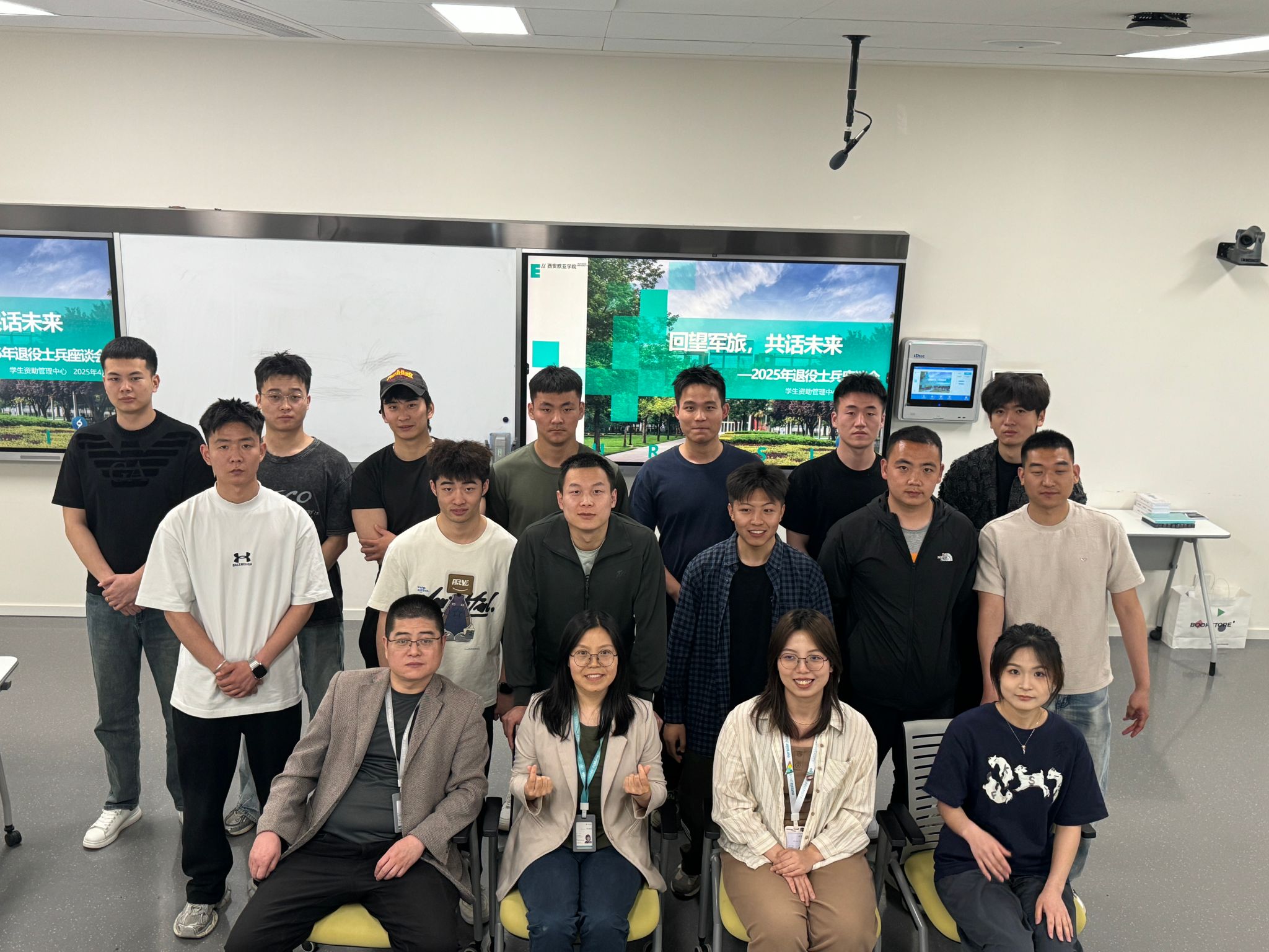 座谈会接近尾声,学校为每一位退役士兵送上了精心准备的小礼品,这些礼物承载着学校的关怀与敬意。随后,全体参会人员进行合影留念,定格下这一充满意义的瞬间。此次座谈会不仅是对军旅岁月的深情回望,更是对未来的庄严承诺!