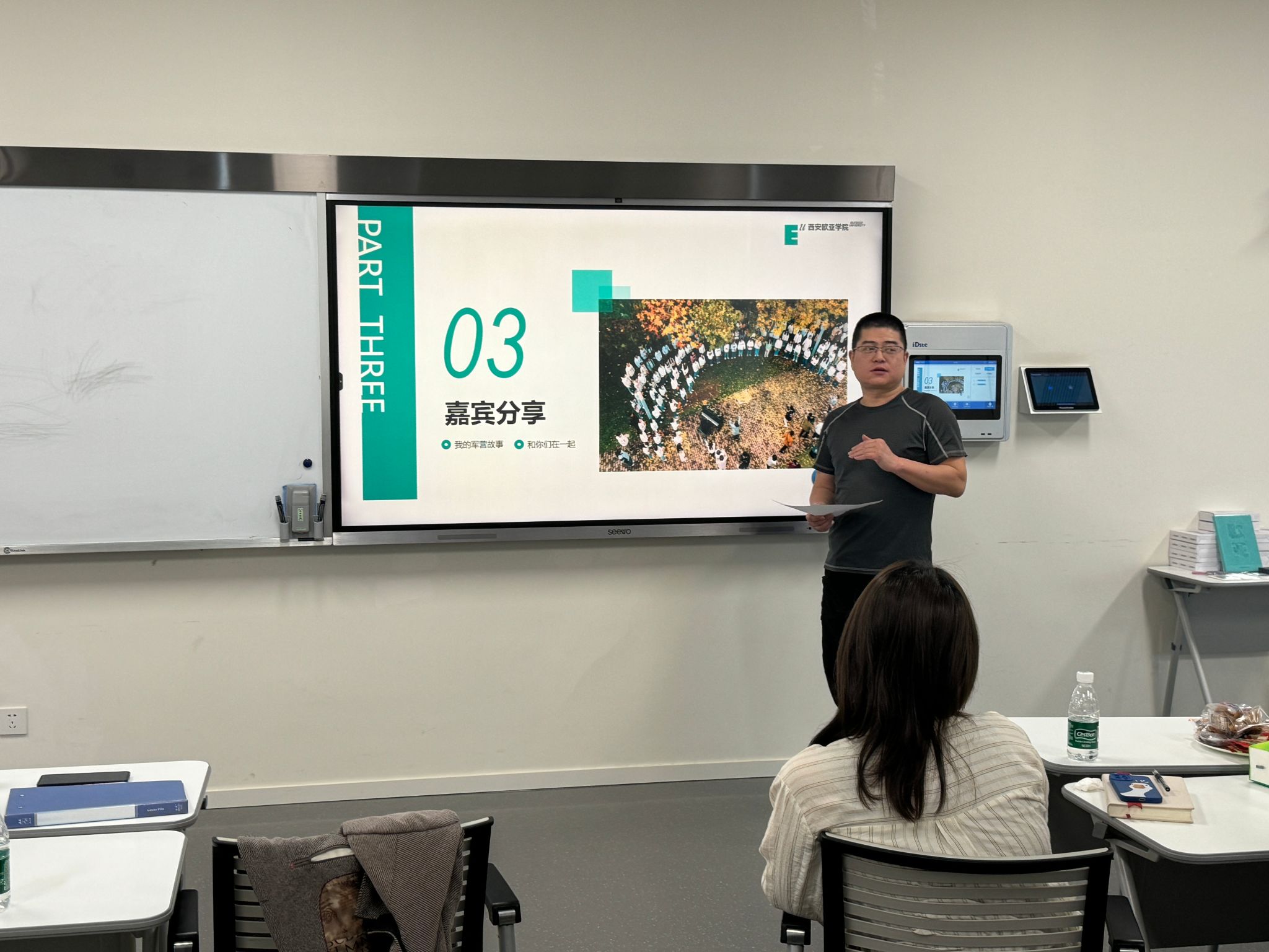 退役军人张茂老师,结合多年的工作经验,分享了他在军营的感人故事,也鼓励学生回归校园后,一定要合理规划时间,将训练的吃苦耐劳精神迁移到学业上,相信大家一定会更优秀,让退役士兵们感受到学校一直以来的关注与关怀。