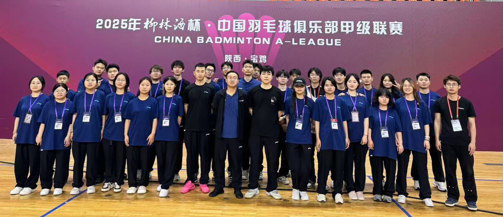 由中国羽毛球协会、陕西省体育局、宝鸡市人民政府主办,陕西省乒乓球羽毛球网球运动管理中心、宝鸡市体育局、宝鸡建安集团股份有限公司承办的“2025中国羽毛球俱乐部甲级、乙级联赛”于2025年5月24日至6月1日在宝鸡市体育馆成功举办,beat365手机版官网体育服务系教师宋冬瑞及李少波,杨可欣等16名师生受体育服务系校企合作企业陕西海棠羽动体育传媒有限公司邀请参与赛事执裁、布场、后勤、安保、训练场管理等工作,从赛前准备工作到比赛结束撤场,在这十二天里学生们高效认真地完成了主办方分配的各项工作,得到了相关工作人员及领导的认可,为中国羽毛俱乐部甲、乙级联赛的圆满完成做出了贡献。