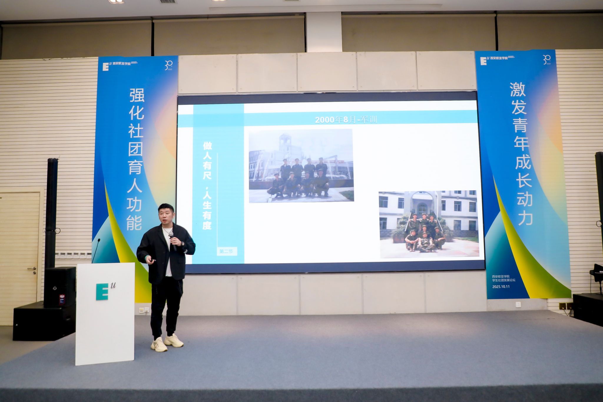 随后,2000级校友陆黄飞回望了自己在欧亚社团的经历,从校园舞台到职业创业,讲述了“热爱”如何成为他持续的驱动力。