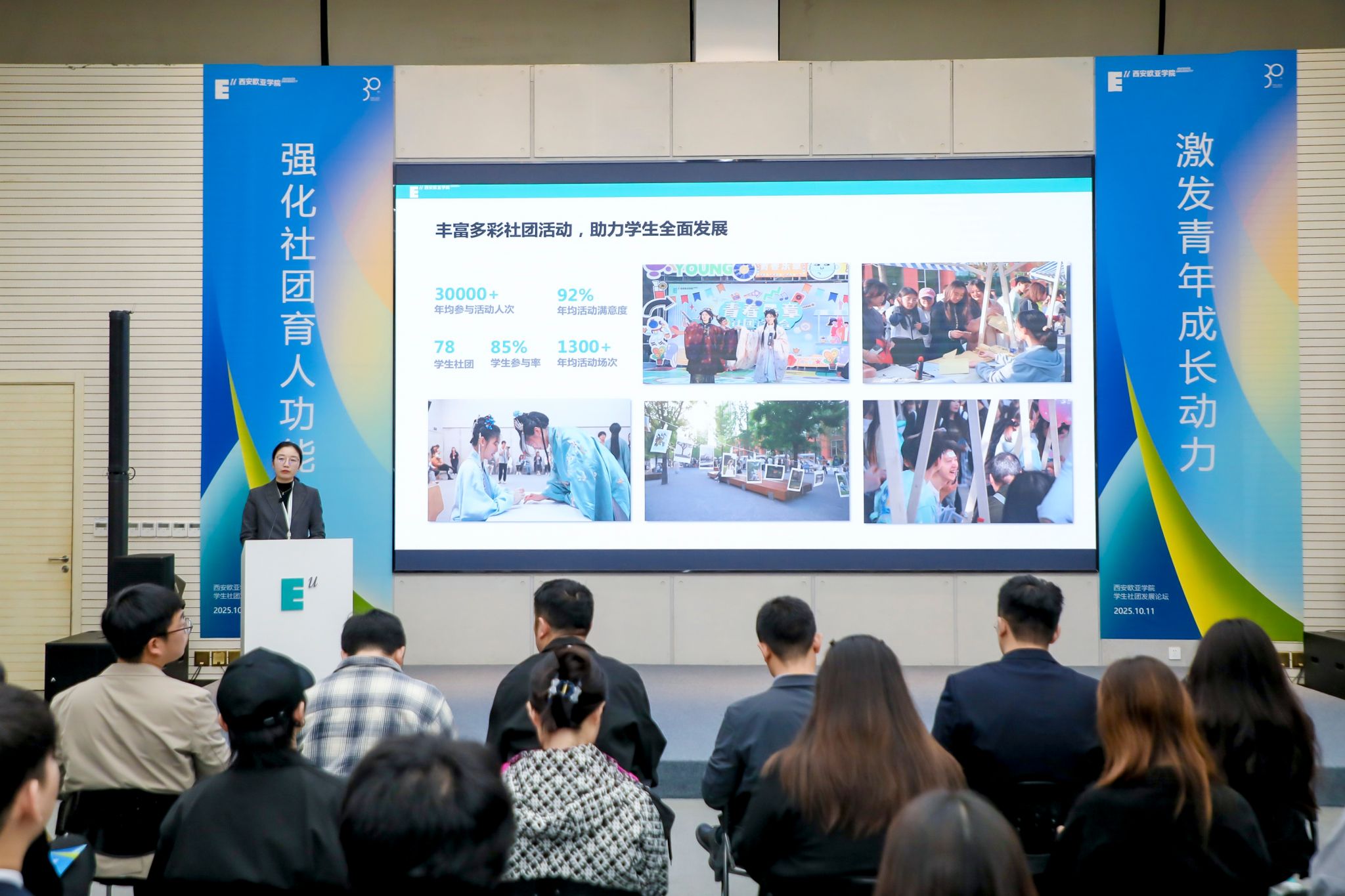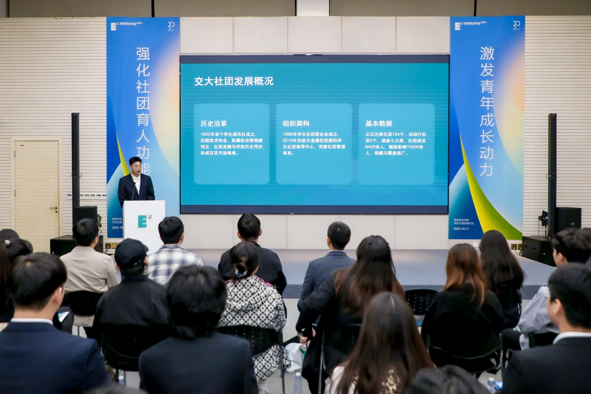 值得一提的是,本次社团发展论坛的策划与执行,全部由学生团队独立主导完成。从议程设计到嘉宾联络,从视觉形象到现场运营,处处体现出欧亚青年在真实情境中展现出的组织力与创造力。论坛并非一场“被安排”的活动,而是一场由学生自发构建、师生共同参与的学习实践。
