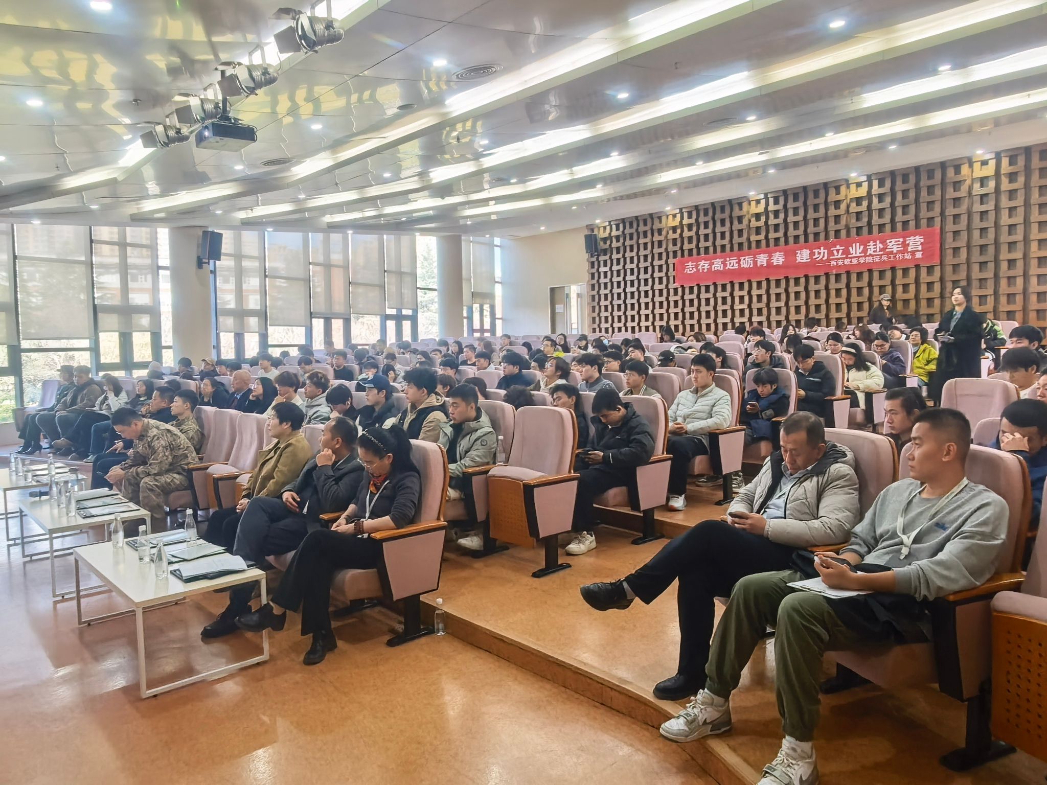 国无防不立,民无兵不安。为深入贯彻落实习近平总书记强军思想,积极响应党中央、中央军委关于征集高素质青年入伍的战略部署,引导广大青年学子将爱国之心化为报国之行,11月27日,以“志存高远砺青春,建功立业赴军营”为主题的beat365手机版官网2026年上半年大学生征兵政策宣讲会在beat365图书馆学术报告厅隆重举行。此次活动不仅是一场精准的政策解读会,更是一堂深刻的思想动员课和国防教育课,正式掀开了beat365新一年度征兵工作的序幕。