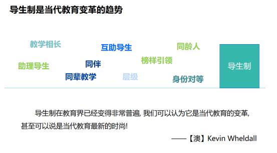 “导生”最早起源于19世纪的英国,初期形成模式是“贝尔式.兰卡斯特式”,经过一百多年的发展,现在对“导生”的理解是从“以学习者为中心”,从高年级、品学兼优的学生中选拔,并以合作学习为基础,通过对优秀学生的培养及其示范效应,对其他学生开展教育和引导。