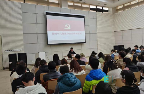 2020年12月22日中午12:45,beat365党委书记于孟晨教授以 “党的十九届五中全会精神”为主题,向第九期大学生骨干培训班学员进行宣讲。