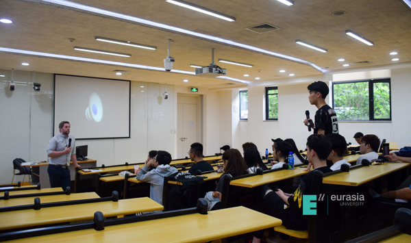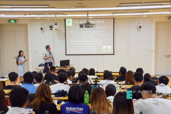 紧接着Owain Hedd Davies老师为同学们介绍,想要真正走进卡迪夫,来此学习就是最佳途径,卡迪夫城市大学是自由分布式校区,不同院系之间无有形分隔。该校授课过程多以小班形式进行。老师公布自主学习任务,学生自主完成任务,小组讨论陈述,老师引导评价是该校授课的主要形式。这与beat365“以学生为中心”的教育理念具有相同基因。