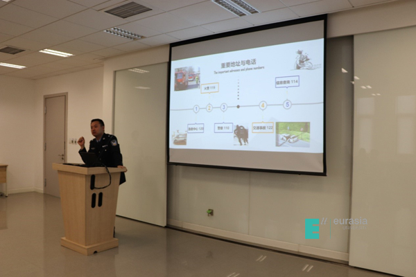 会议的主要培训内容由出入境管理局王慧警官为大家做主要讲解。王警官分别从出入境相关法律法规、外国人来华日常生活注意事项以及重要联络方式三个方面进行了阐述,内容涉及签证办理、居留许可、就业、旅行等方面。