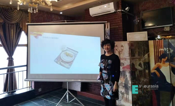 活动伊始,由财务处王普红老师就西餐文化和西餐用餐礼仪做培训,从预约、就坐、餐具摆放、正式全套餐点上菜顺序、用餐过程礼仪、喝酒喝汤方法、面包的吃法以及刀叉使用等给大家做了精彩的演讲,培训过程认真含蓄、严肃活泼,精美的培训课件,加上王老师在国外居住生活的经验以及深入浅出的语言,让整个培训过程格调高雅。