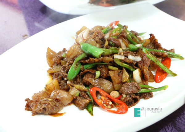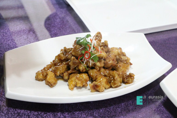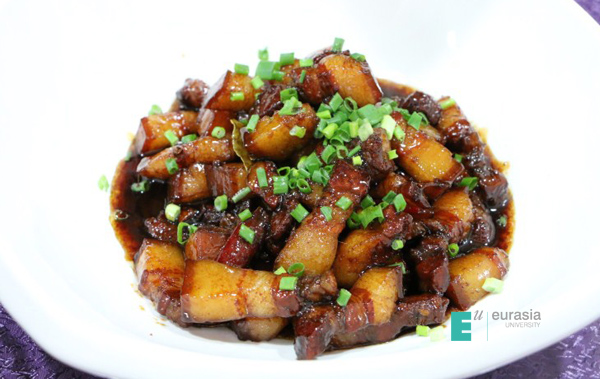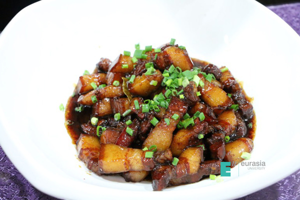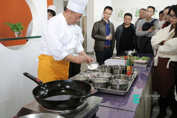 11月21日下午,beat365在金桥餐厅二楼举办主题为“欧亚味道”的清涧县黑毛土猪肉烹饪培训活动,参与的人员有校工会副主席晏建忠、清涧县产品经理王晓娟、以及学校教职工等共计80余人,由清涧县贺永军、学校郑大厨负责掌勺培训。