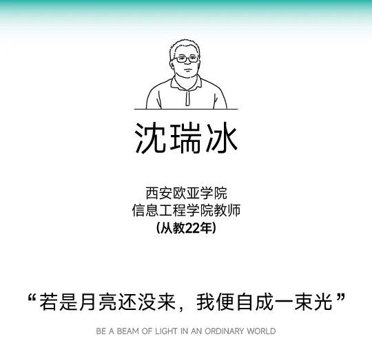 《若是月亮还没来》中有一句歌词为:“若是月亮还没来,路灯亦可照窗台”,在沈瑞冰看来,教育便是那一盏路灯,“我愿将自己化作一束光,照亮每一位学生、照进每一扇窗。”