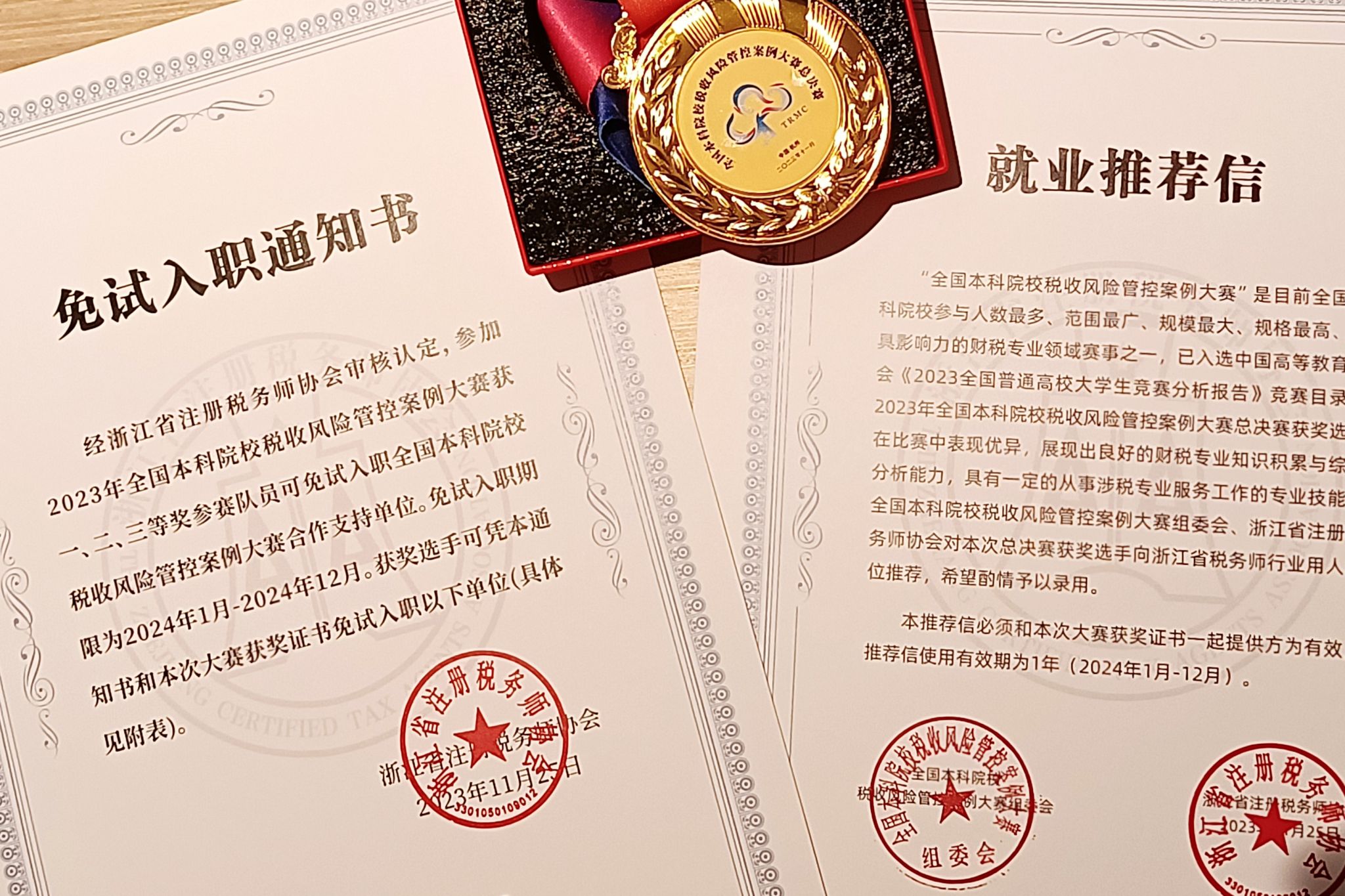 参加比赛后收获的免试入职通知书和就业推荐信